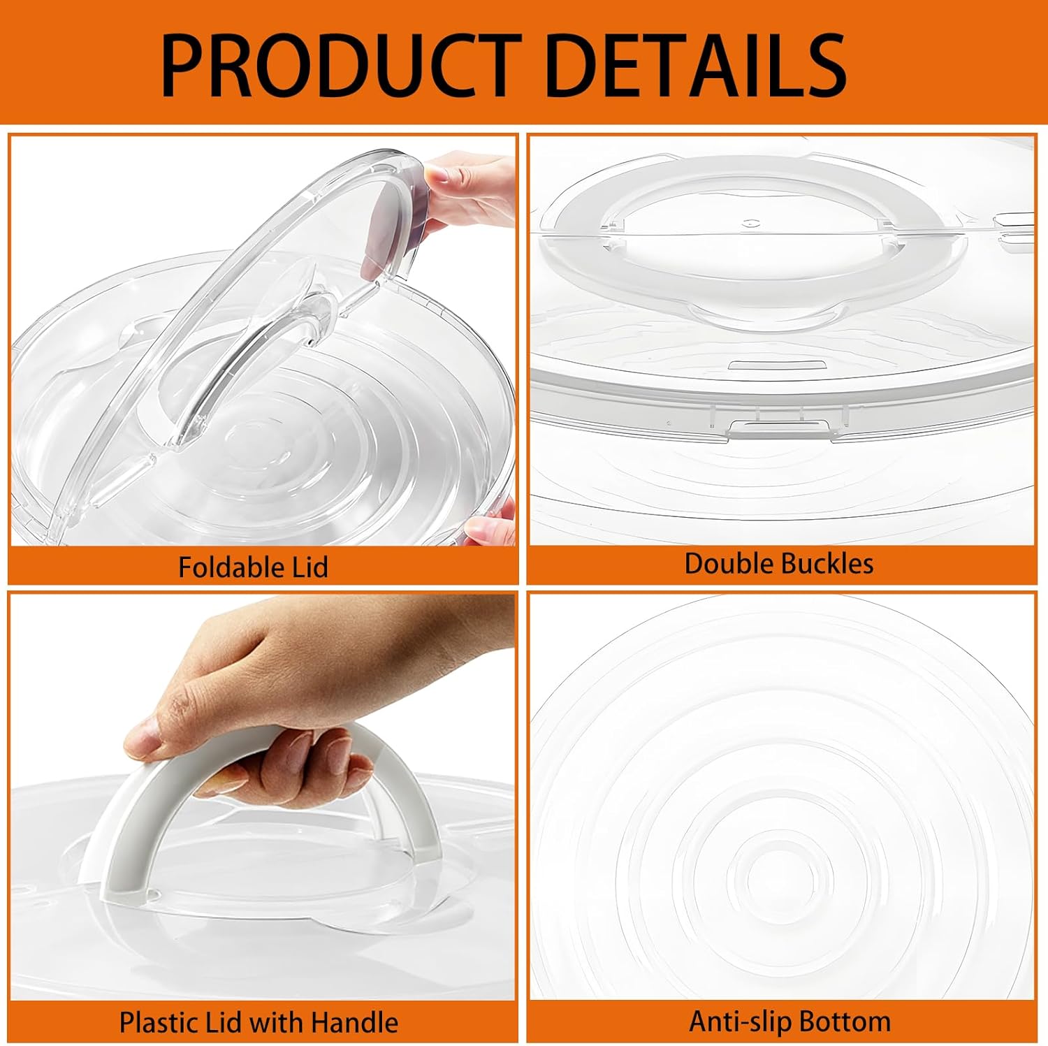 • High-Quality Round Pie Keeper: Food storage container with lid and handle is made from high-quality food-grade plastic, sturdy and durable, resistant to deformation, easy to clean