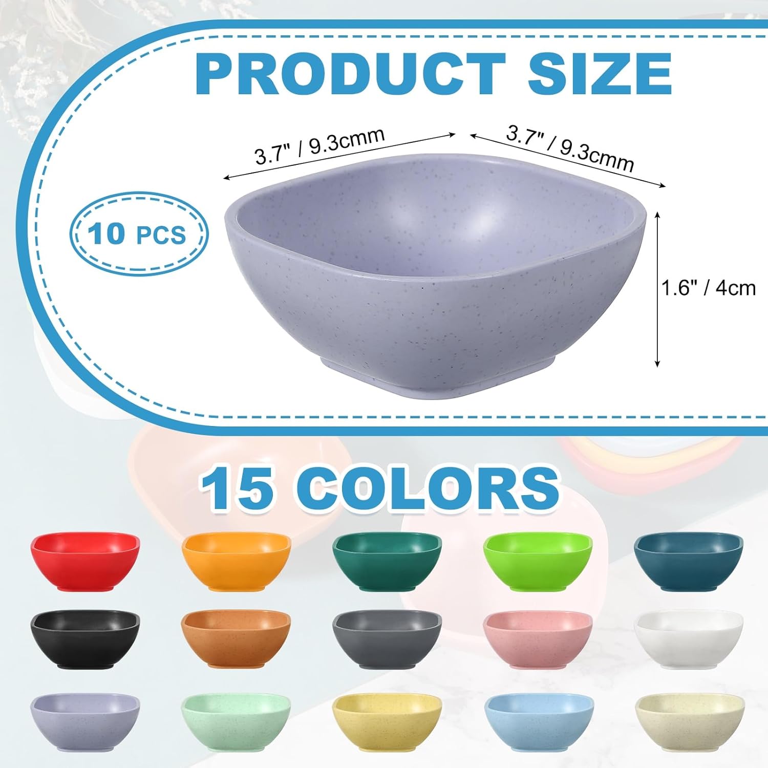 • Packing list: 10 Pcs x Small Dipping Bowls; Length: 9.3 cm/3.7 inch; Width: 9.3 cm/3.7 inch; Height: 4 cm/1.6 inch