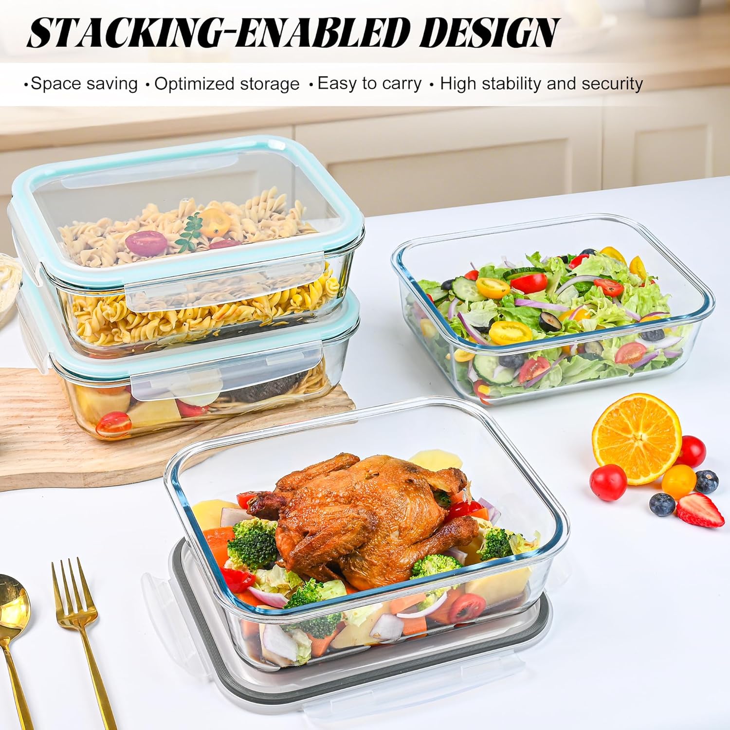 • MULTI-FUNCTIONAL: The food storage containers glass are suitable for meal prep, work lunches, outdoor picnics and travel. Safely store fruits, veggies, salads, grains, meat, noodles and leftovers. Suitable for oven safe meal prep containers that can be used to bake roasted chicken and can be directly placed on the table as containers for food. Meets all home, office and travel needs.