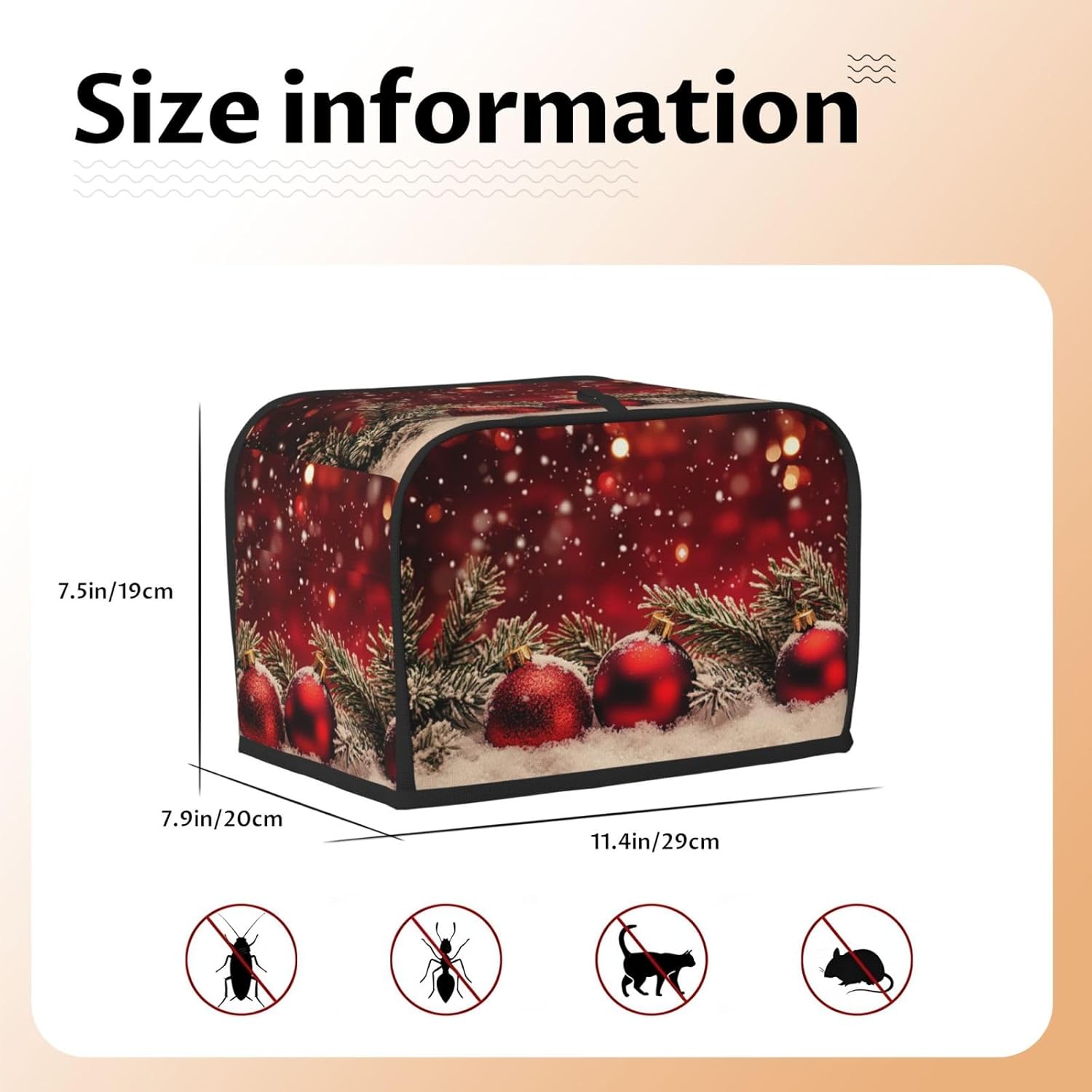 Toaster Cover 2 Slice Red Christmas Ball Glitter Kitchen Small Appliance Covers with Pockets Dust and Fingerprint Protection