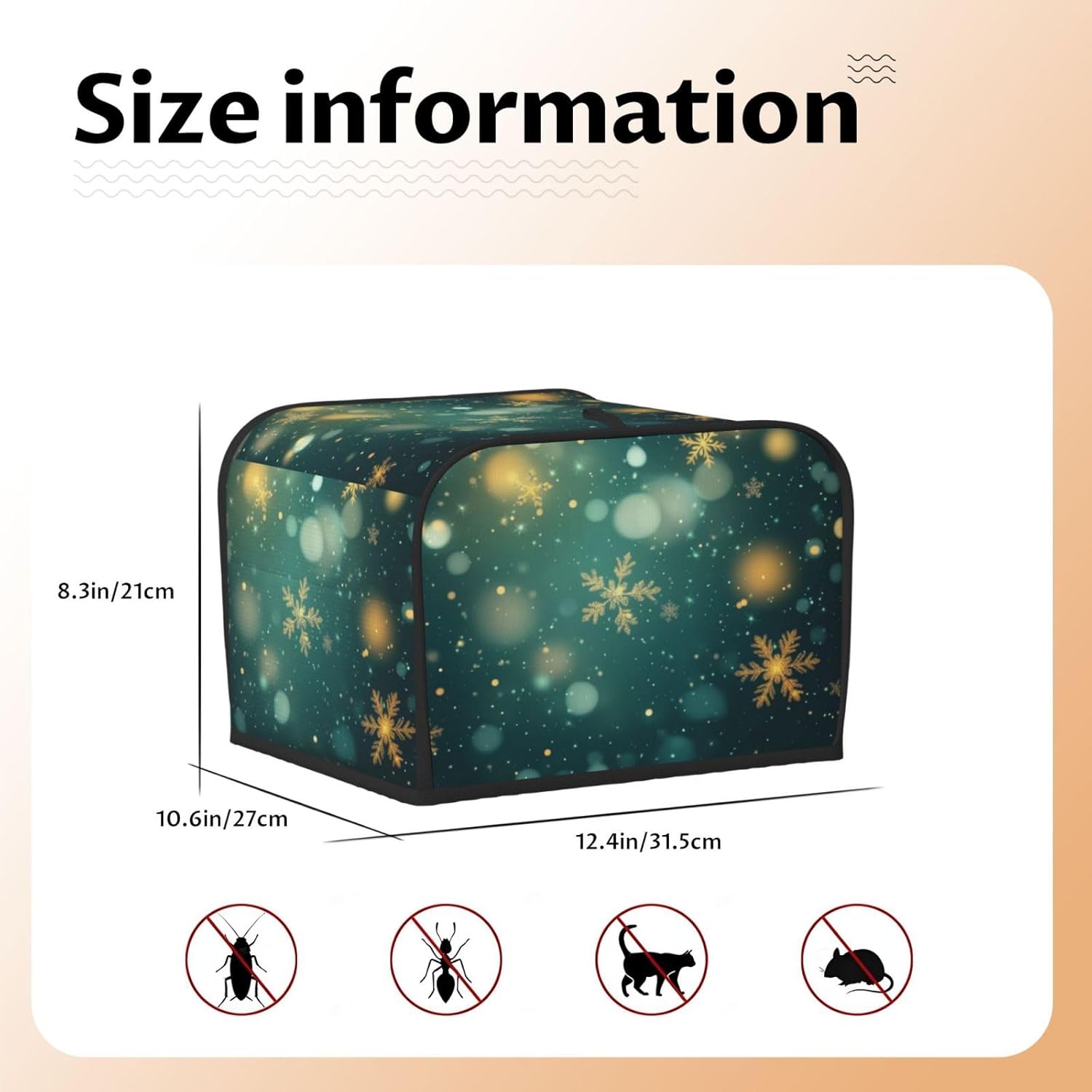 Toaster Cover 4 Slice Snowflake Green Christmas New Year Kitchen Small Appliance Covers with Pockets Dust and Fingerprint Protection