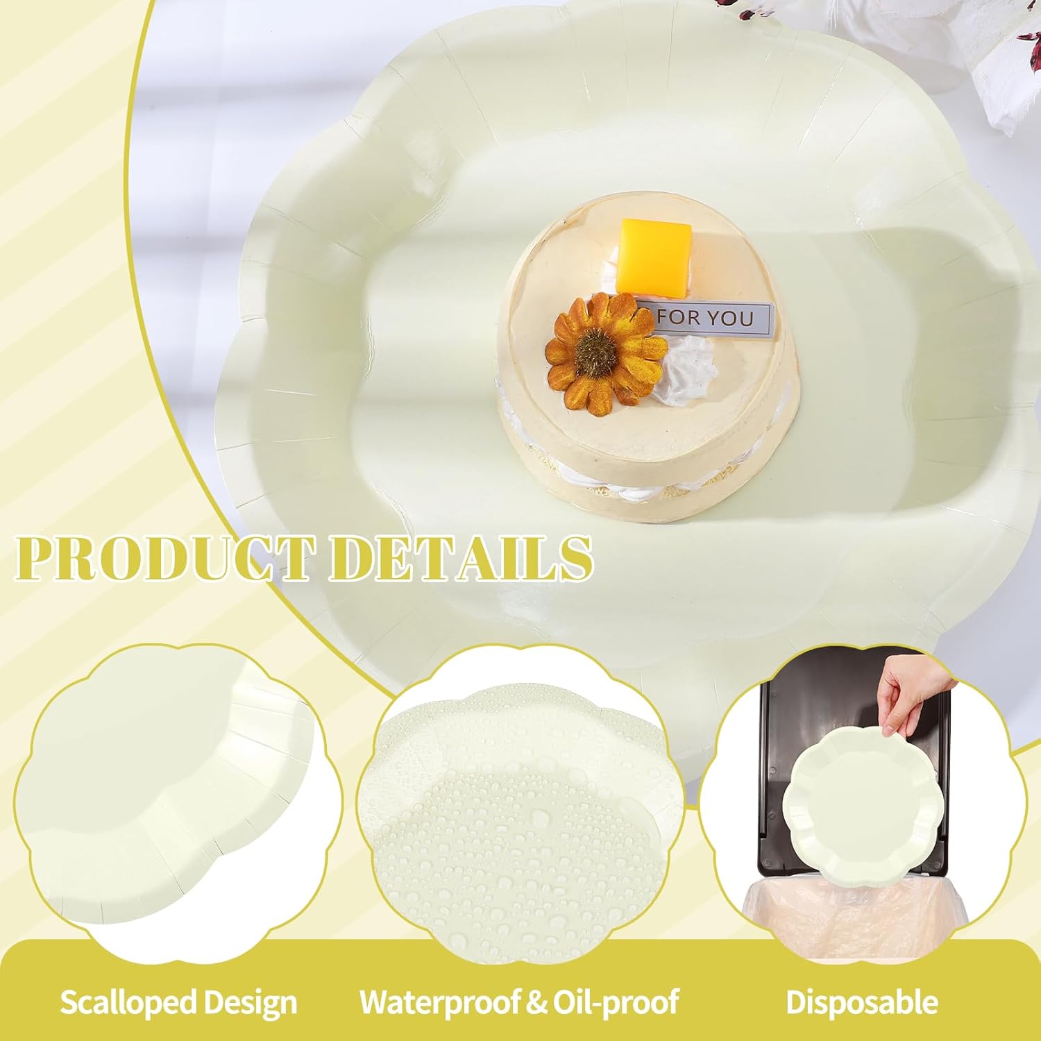 • Wide Application: Scalloped ivory cake plates have wide applications, suitable for birthday, baby shower, graduation, picnics, ceremonies and other parties.They can also be used for daily family dinners and picnics