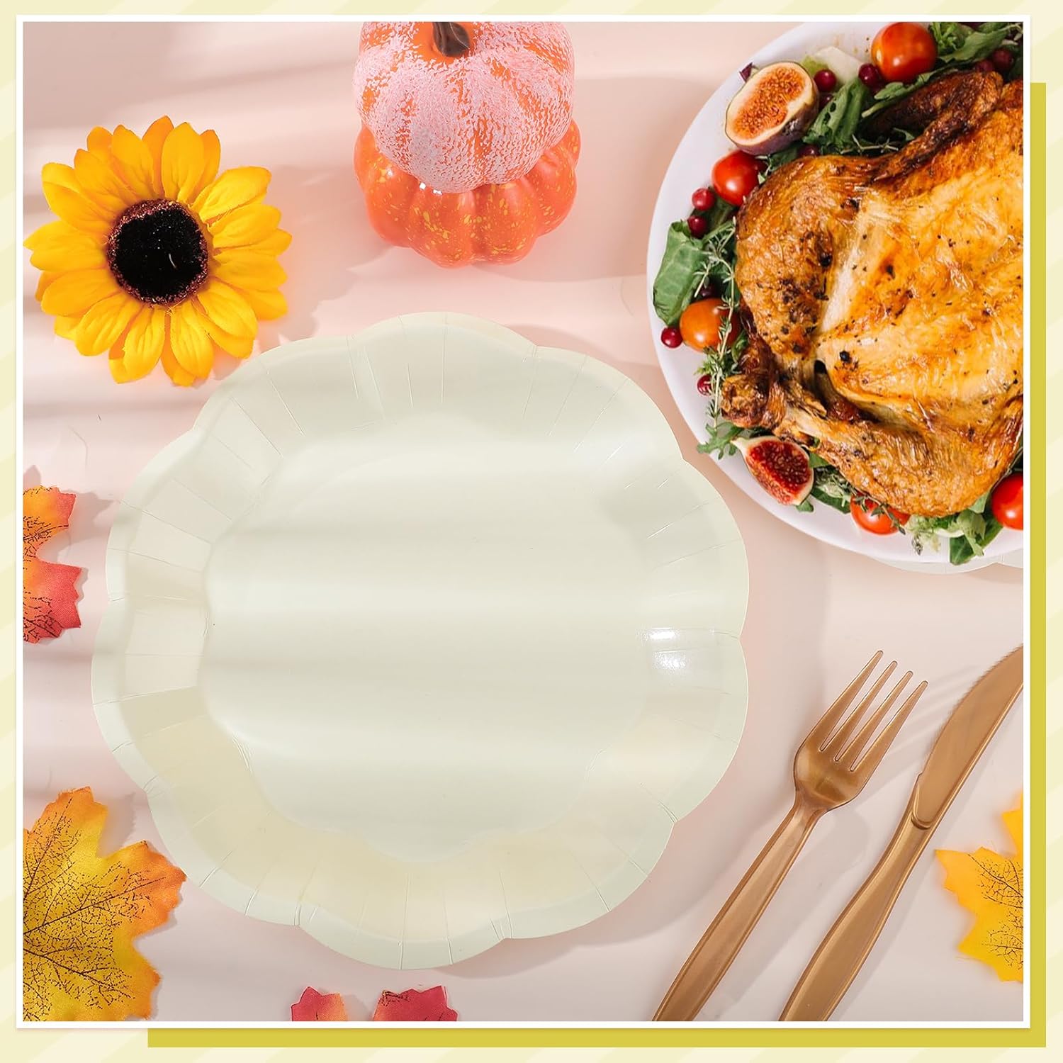 30pcs Thanksgiving Paper Plates 9 Inch Ivory Scalloped Paper Plates Disposable Cream Dinner Plate for Thanksgiving, Friendsgiving, Weeding, Birthday, Baby Shower