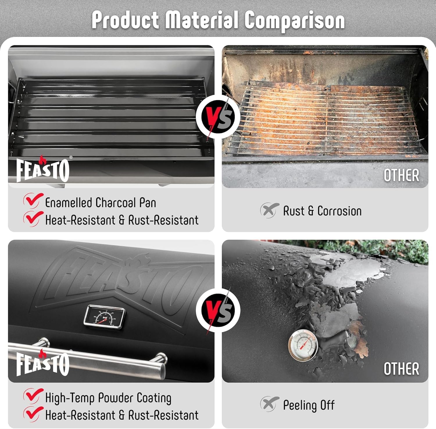 • Porcelain-enameled Grates: This charcoal bbq grill features porcelain-enameled grates for high-temperature resistance, rust prevention, heat distribution, easy cleaning, ensuring that every barbecue maintains the perfect flavor of your food