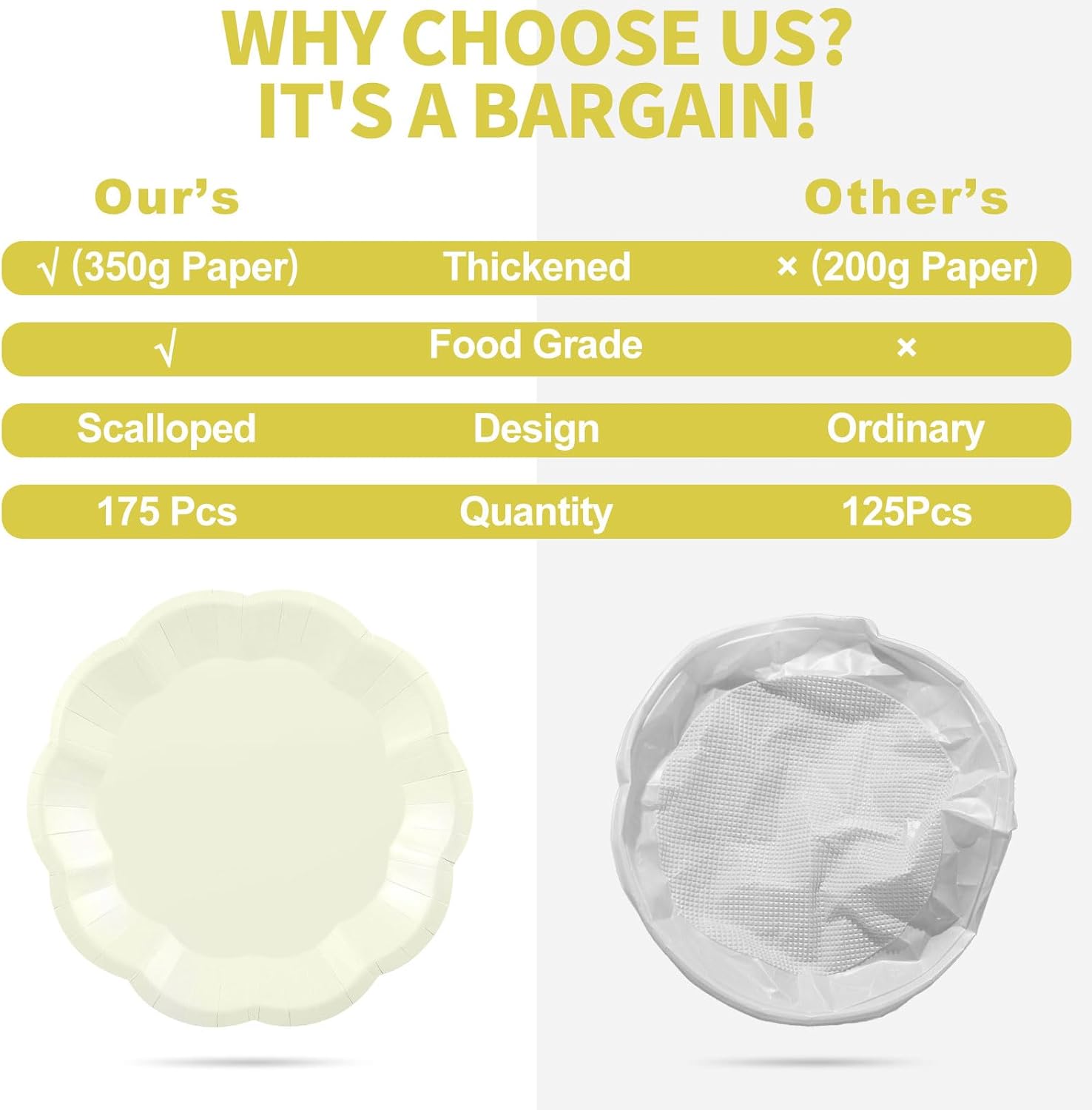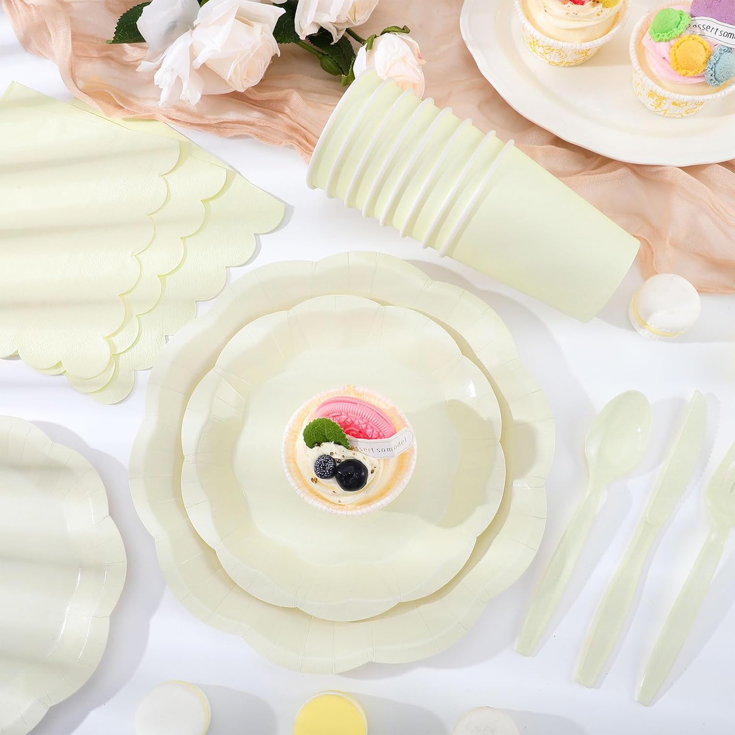 • 【Wide Application】Cream Scalloped paper plate set is versatile and is not only suitable for various celebrations such as Thanksgiving decoration, birthday parties, baby showers, bridal showers, weddings, etc.; it is also very suitable for family gatherings and outdoor picnics, helping you to easily cope with any occasion.