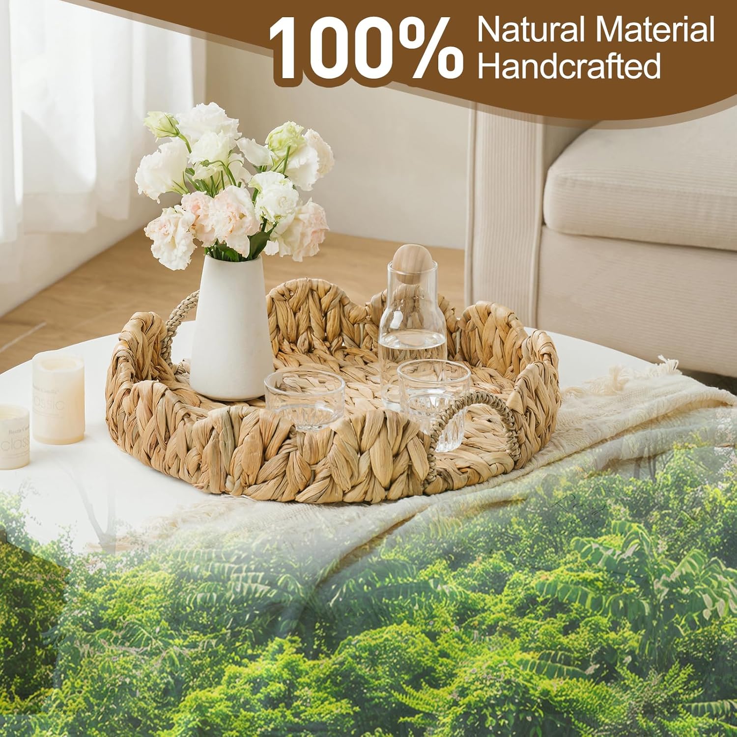 • 【Unique Scalloped Edge Design】:Features artisanal scalloped borders that elevate home aesthetics, transforming this woven tray into a statement centerpiece to light up your home.