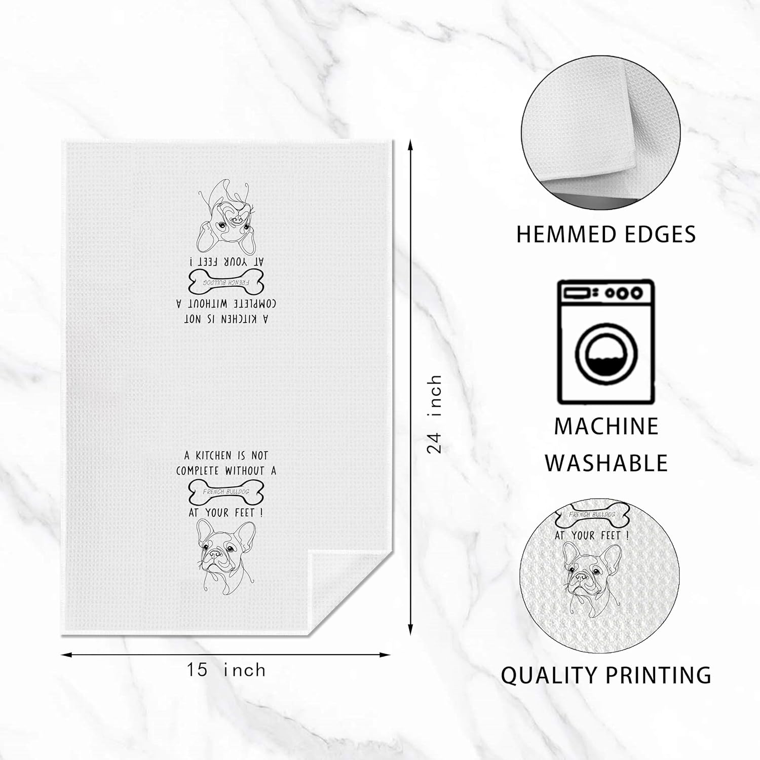 French Bulldog Kitchen Towels, Ideal for Dog Lovers & Kitchen Decor, Great Gift for French Bulldog Owners, 16 x 24 Inches
