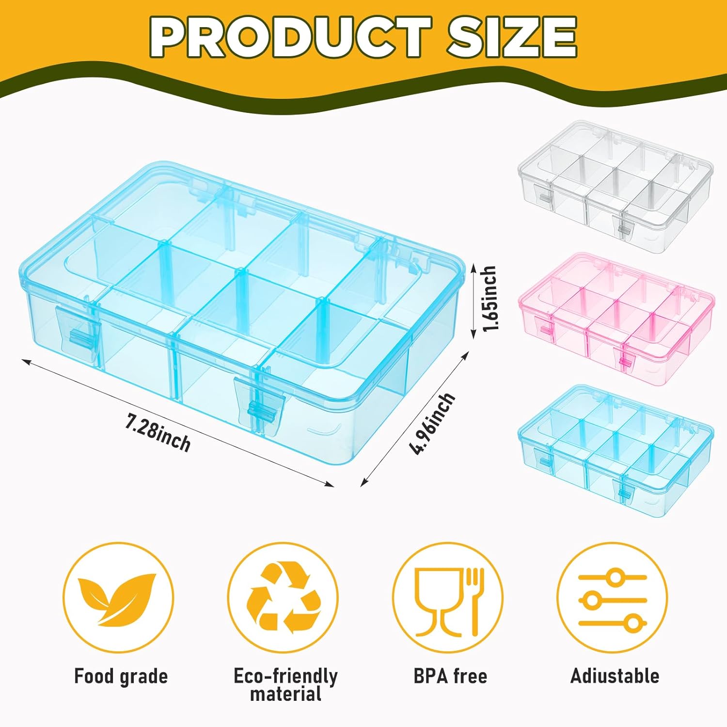 Thyle 3 Pcs Snack Box Container 8 Compartments Snack Containers Reusable Transparent Lunch Box Organizer Small Plastic Food Storage with Lids for Meal Prep School Work Travel (Clear Blue Pink)