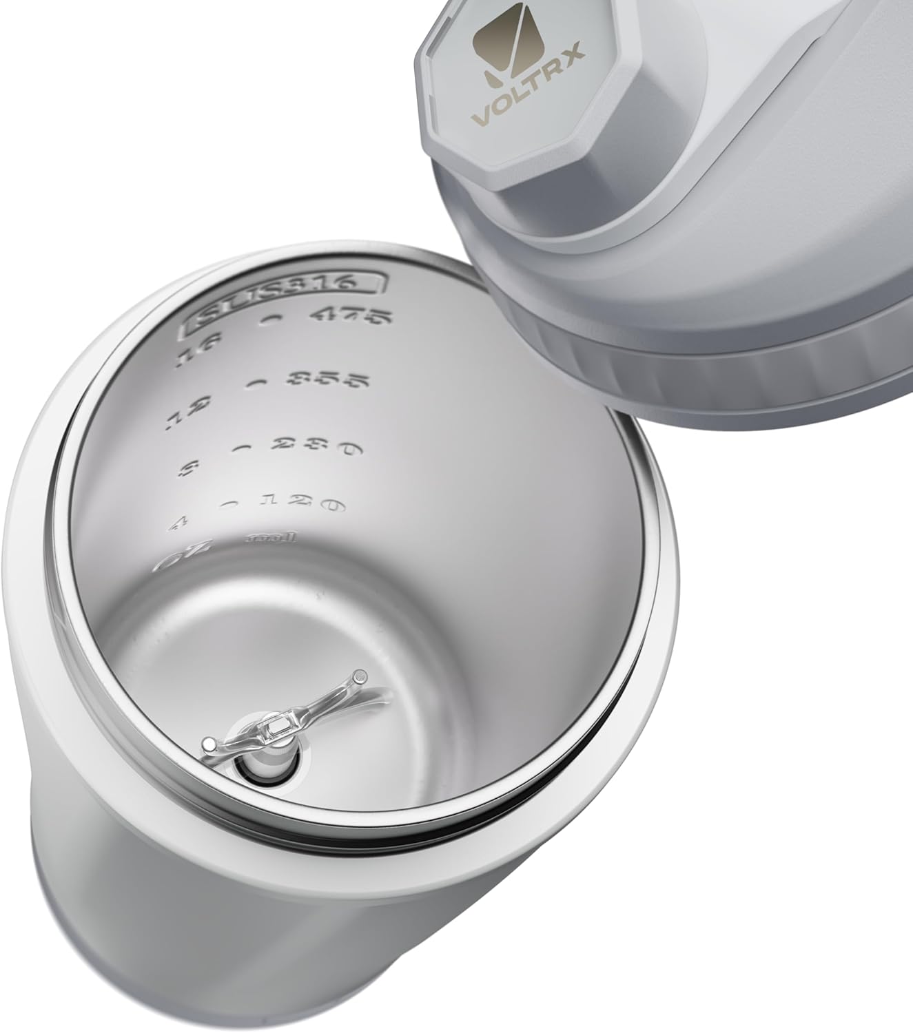 VOLTRX ChillMix Shaker Bottle Insulated Stainless Steel - USB C Rechargeable Electric Protein Shake Mixer, Shaker Cups for Protein Shakes and Meal Replacement, Ice White, 16 oz