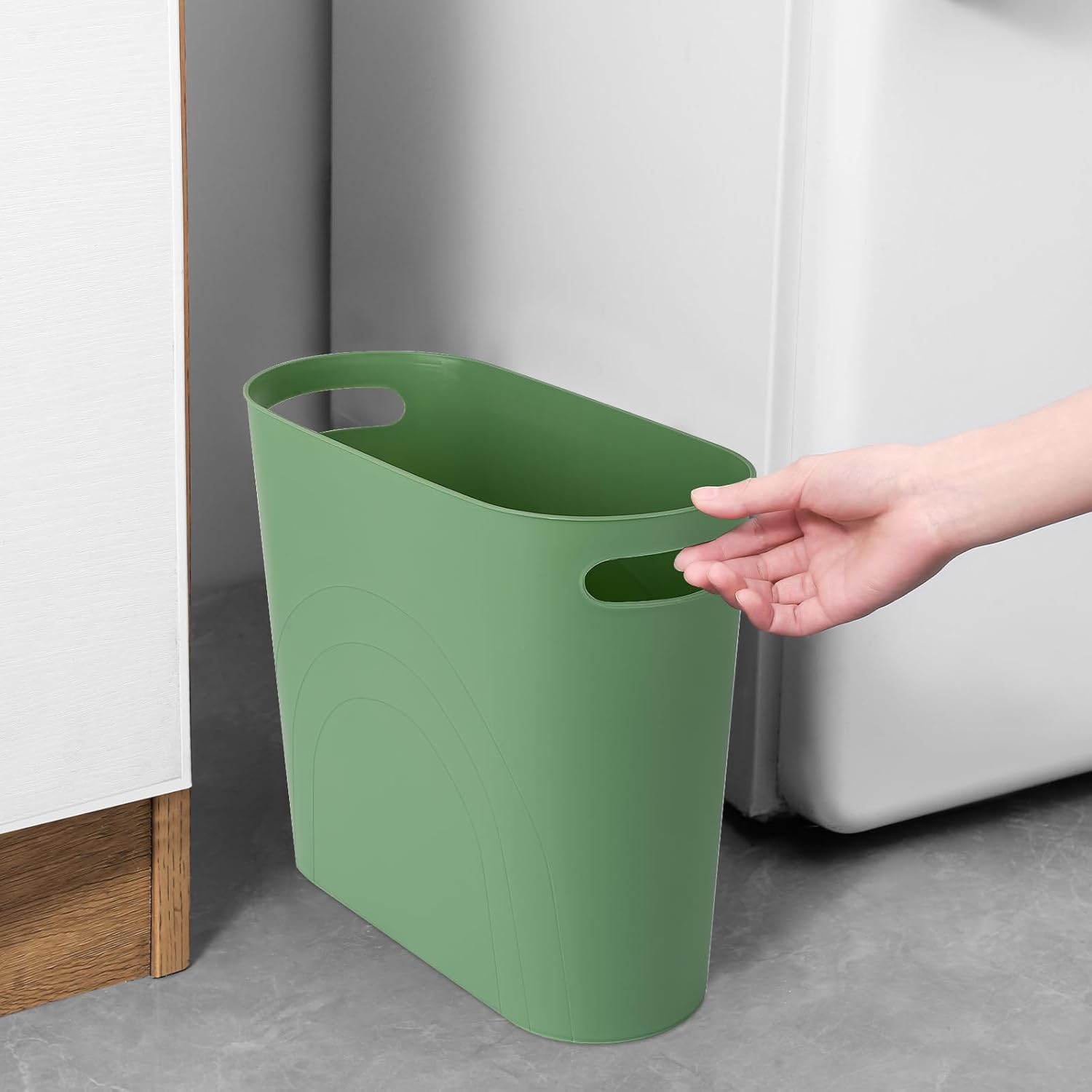 rejomiik Small Trash Can, 3.5 Gallon Slim Garbage Can Plastic Waste Basket with Handles Container Bin for Narrow Spaces Bathroom, Bedroom, Kitchen, Office at Home, Green