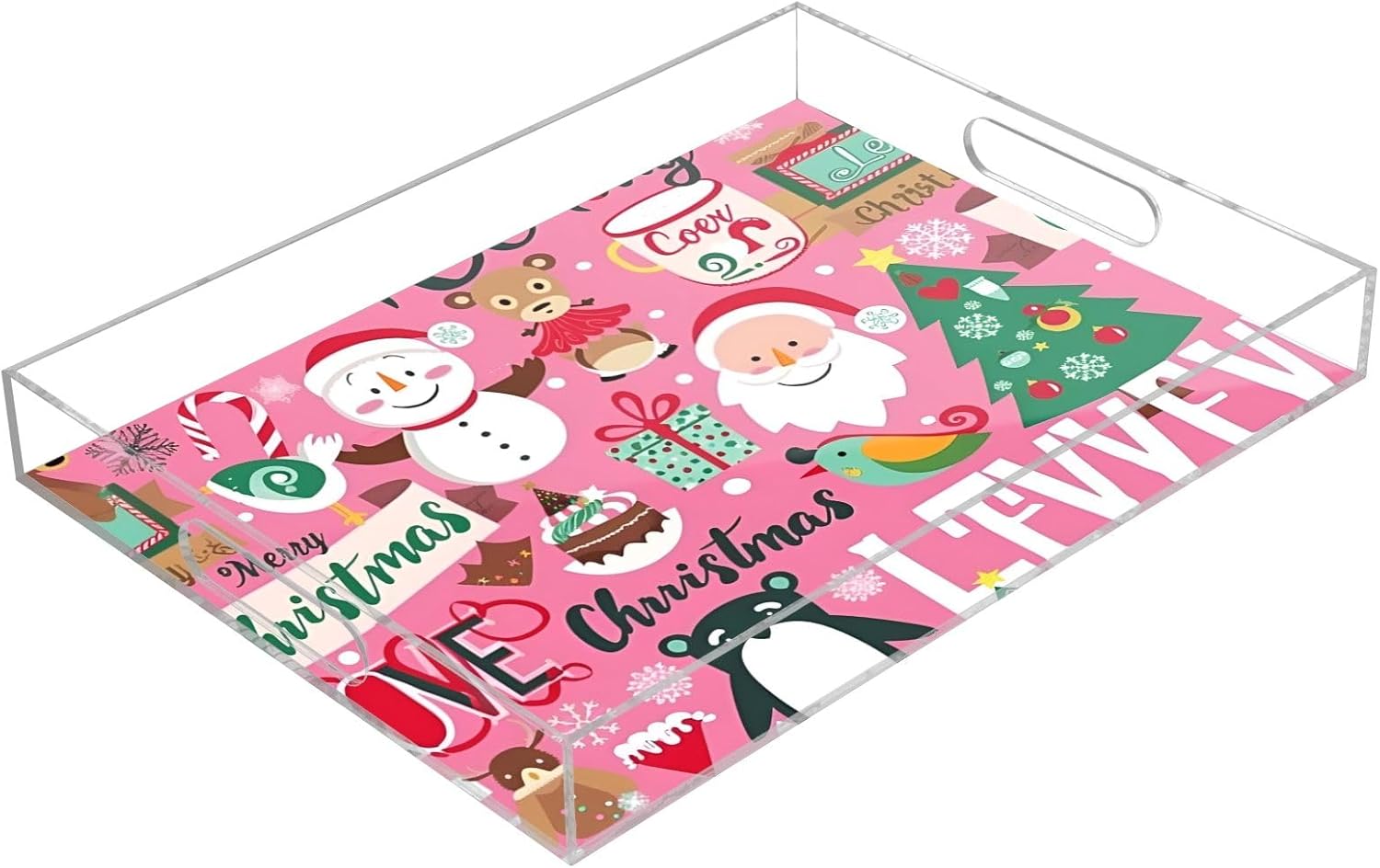 Christmas Patterns 3 Plastic Food Serving Tray Decorative Vanity Trays for Bathroom Coffee Table Kitchen Counter 11.8 * 15.7in