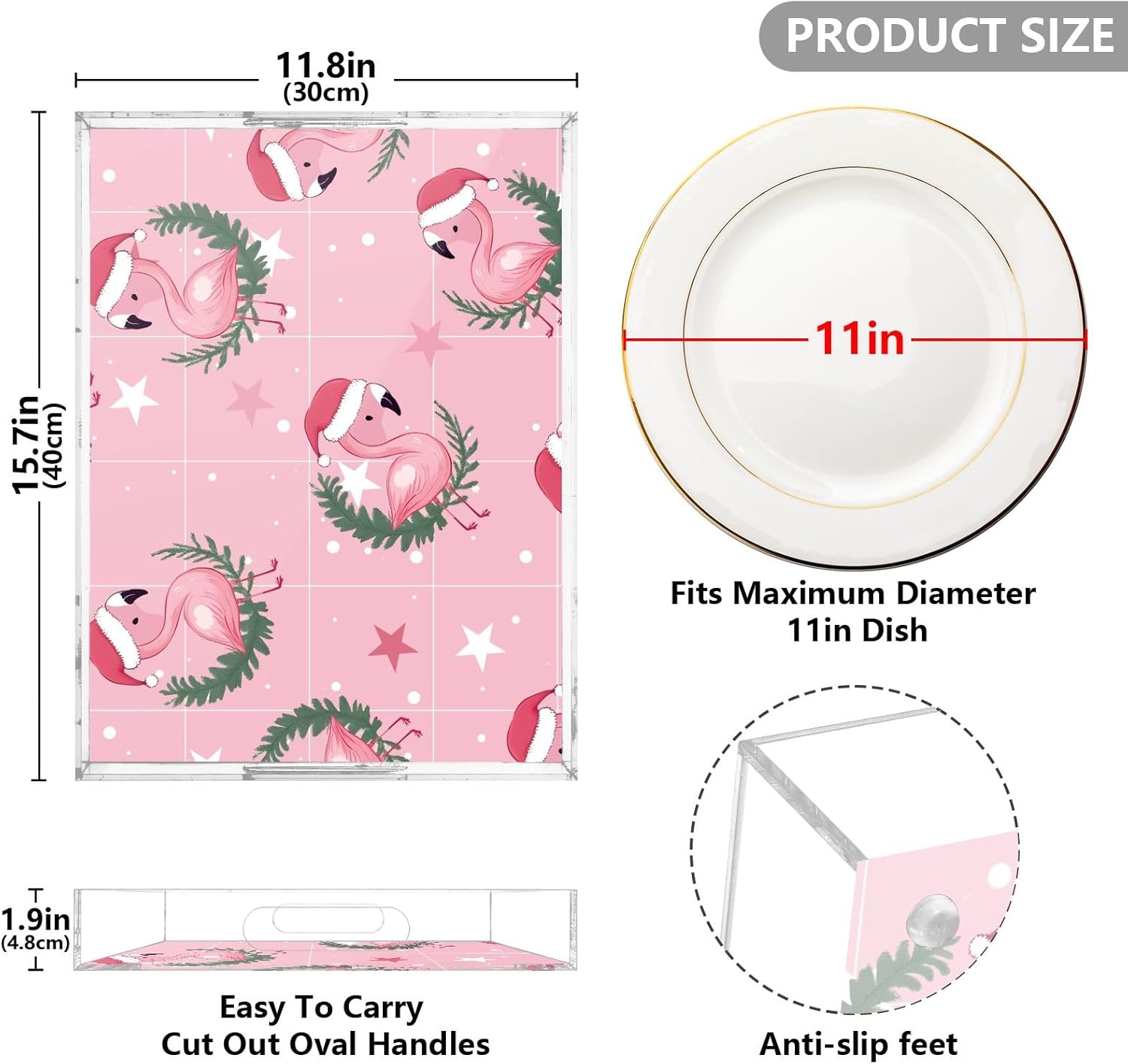 Christmas Flamingo Pink Plastic Food Serving Tray Decorative Vanity Trays for Bathroom Coffee Table Kitchen Counter 11.8 * 15.7in