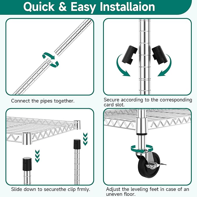 • EFFORTLESS ASSEMBLY: Wave goodbye to the hassle of tools. Simply follow the instructions provided, and you'll have your metal shelving ready in no time, effortlessly combining convenience with simplicity.