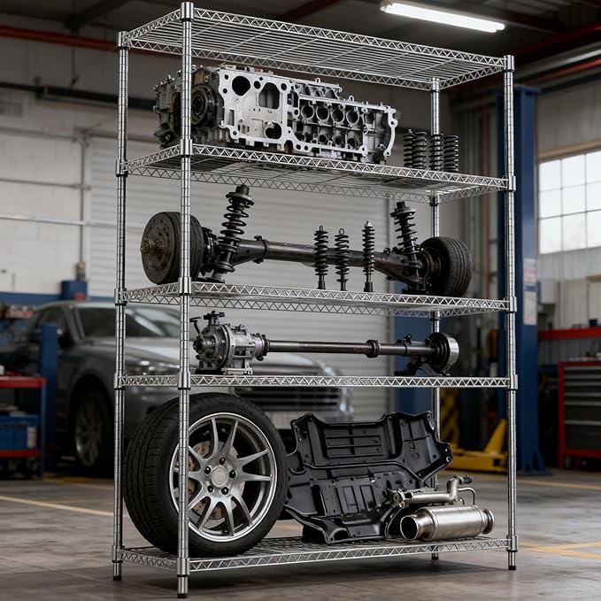 5 Tiers Shelf 1750 lbs Steel Storage Shelving Utility Shelving Unit Steel Organizer Wire Rack for Home,Kitchen,Office,Garage Chrome 17.7" D x 47.2" W x 72.4" H