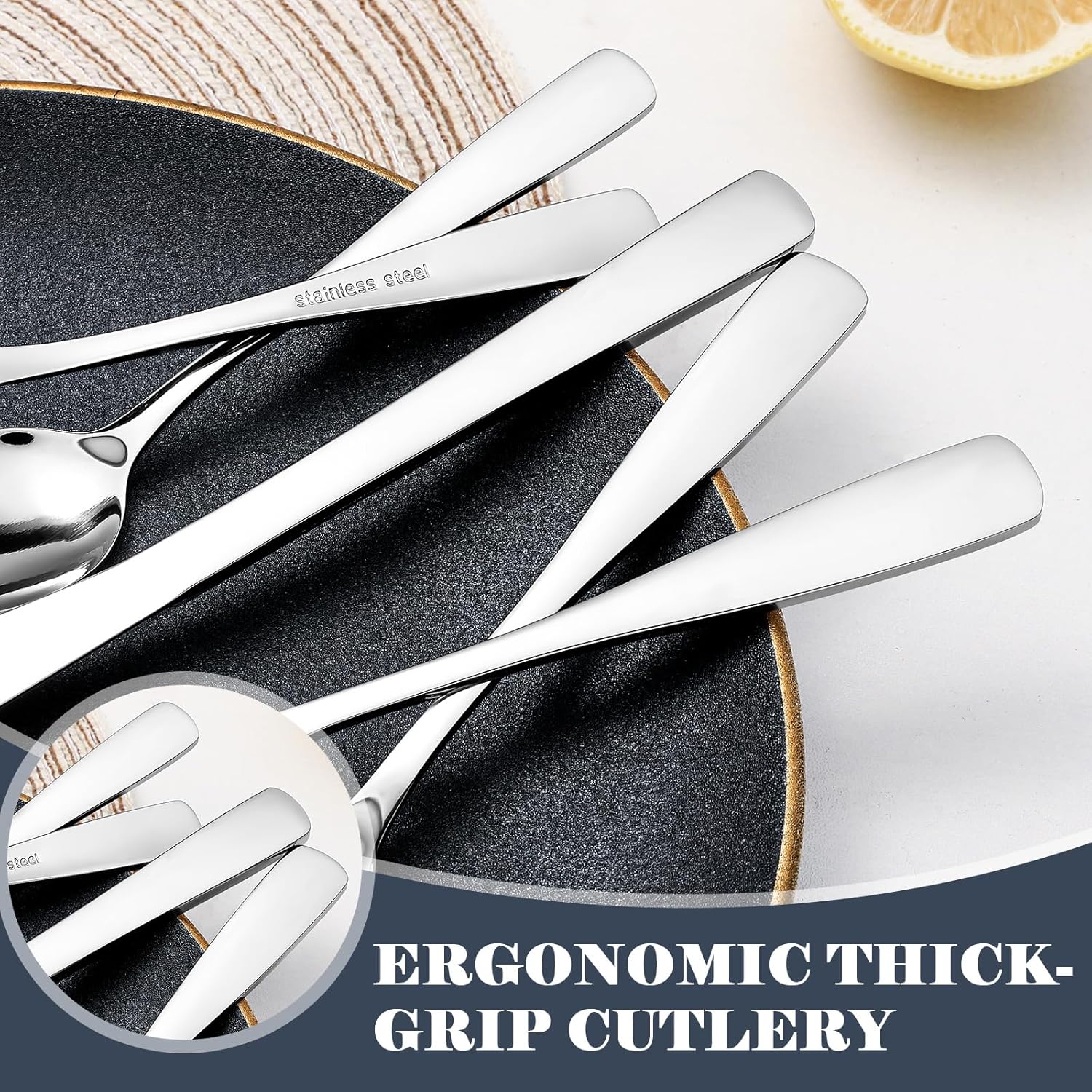 • 【FOOD-GRADE STAINLESS STEEL CONSTRUCTION】Crafted from high-quality stainless steel, this silverware set features excellent durability for daily use. The sturdy construction ensures the utensils maintain their shape without bending, while the polished surface provides reliable resistance to rust, preserving its elegant appearance over time.