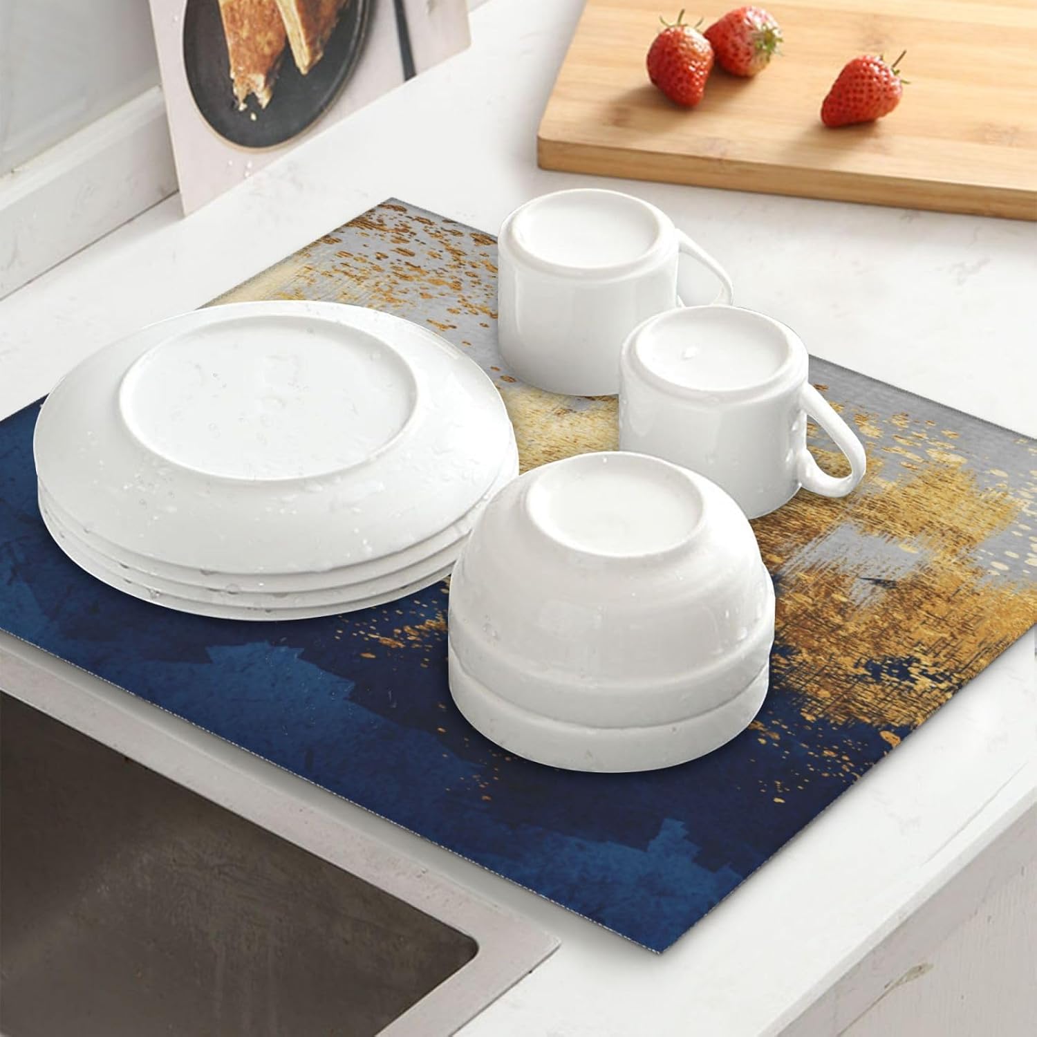 • Premium Microfiber & Superior Absorption - This navy blue gold abstract art dish drying mat is crafted from high-quality microfiber, acting as an absorbent drying mat and dependable kitchen drying mat with excellent water absorption. It efficiently keeps dishes dry, serving as a vital drying pad for kitchen counter in daily use