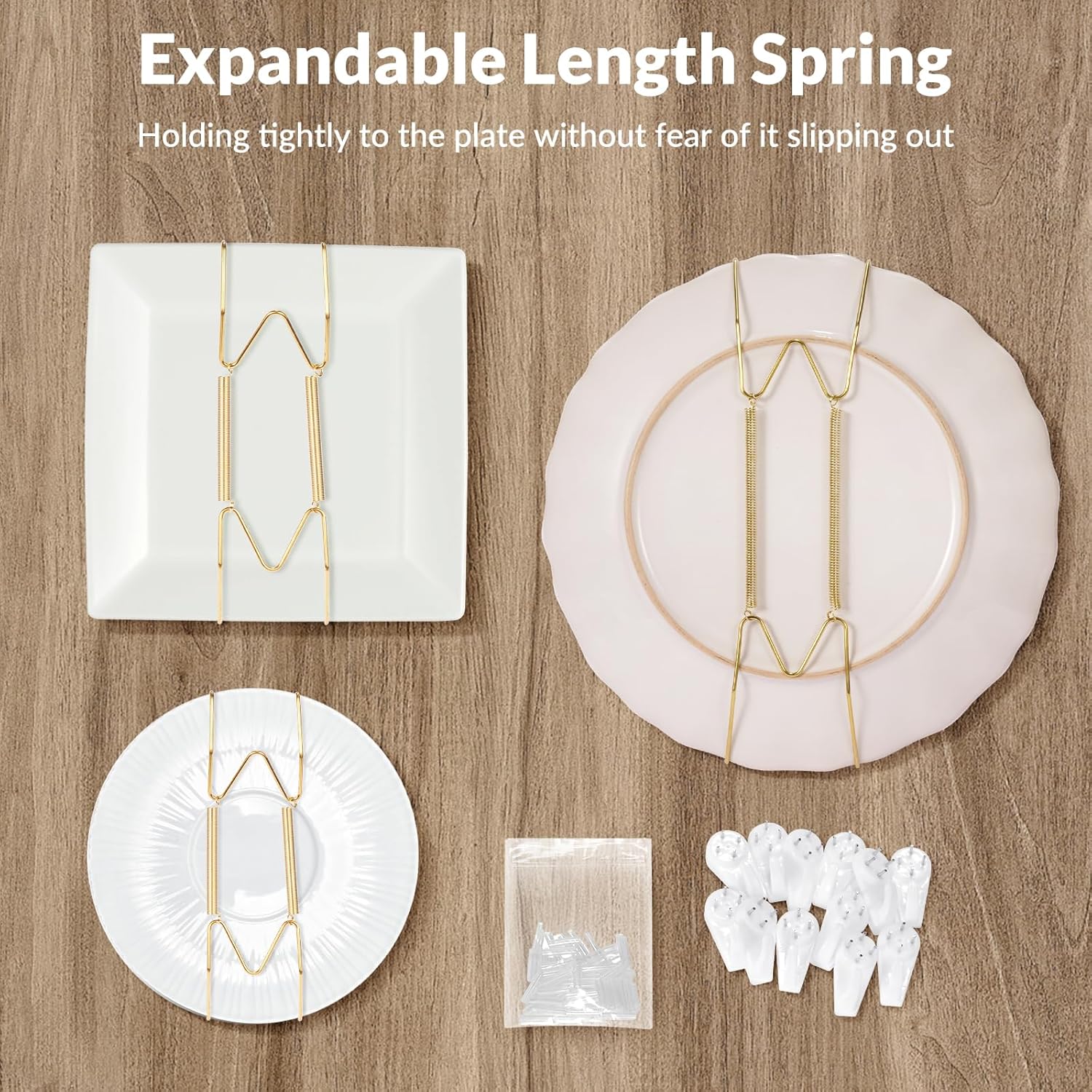 • INVISIBLE & EXPANDABLE: These plate hangers are almost invisible from the front, expandable length springs. Holding tightly to the plate without fear of it slipping out.