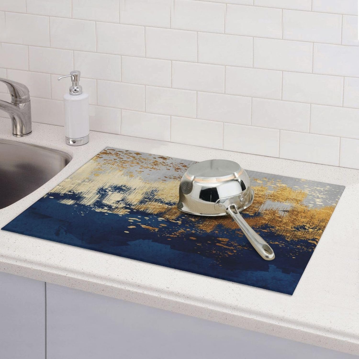 • Premium Microfiber & Superior Absorption - This navy blue gold abstract art dish drying mat is crafted from high-quality microfiber, acting as an absorbent drying mat and dependable kitchen drying mat with excellent water absorption. It efficiently keeps dishes dry, serving as a vital drying pad for kitchen counter in daily use