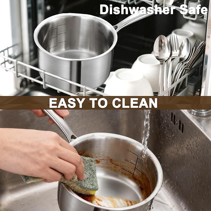 1Qt and 2Qt Triple Stainless Steel Saucepan with Lid, Ramen Pot with Clear Glass Cover, Small Sauce Pan for Cooking Oatmeal, Induction-Ready, Dishwasher-Safe, Suitable for All Stoves
