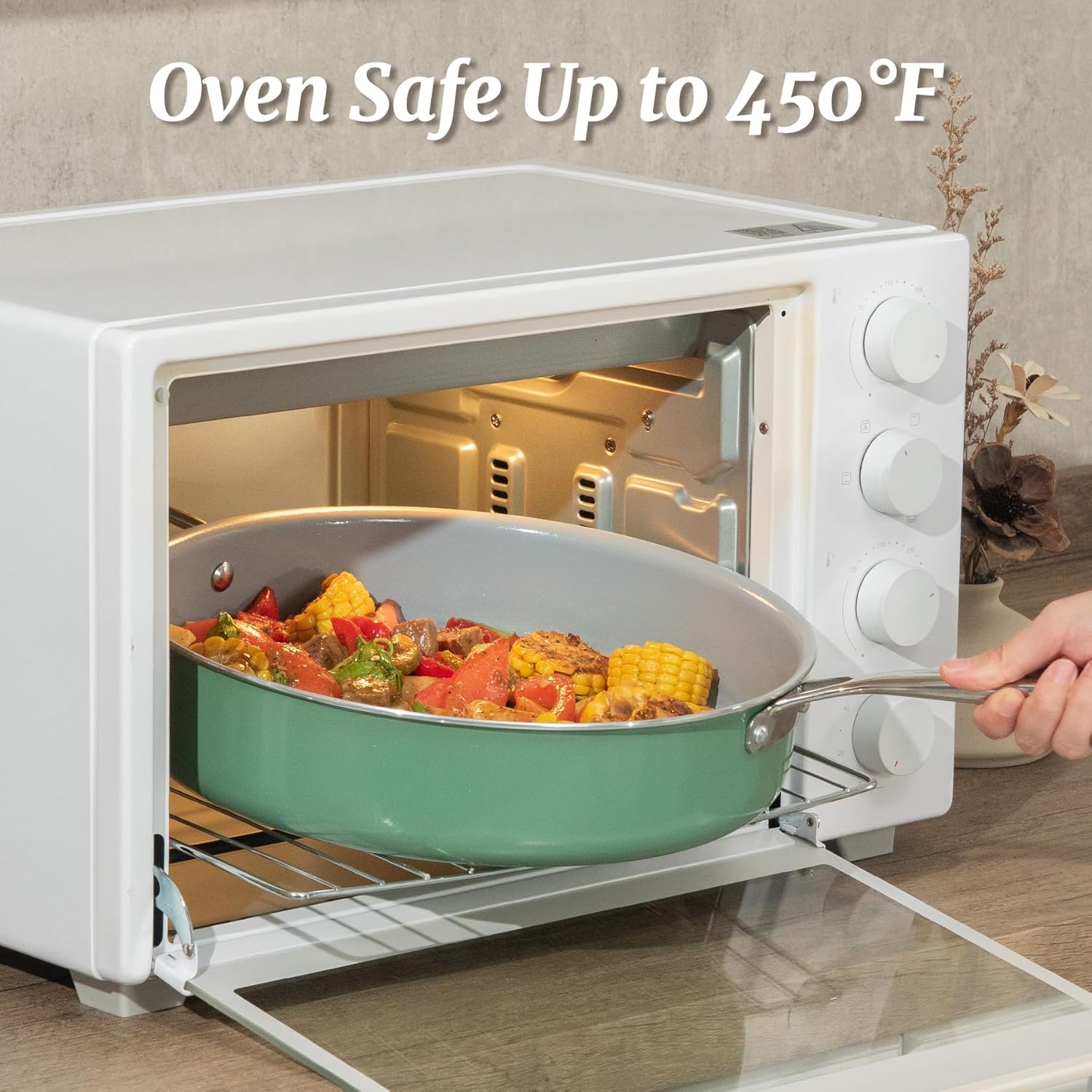 • Effortless Cleanup & Dishwasher Safe- With the complete ultra nonstick ceramic coating, cleaning up our large skillet is like a breeze by simply wiping the saute pan with a sponge and warm soapy water, or toss it in the dishwasher for even more effortless cleanup