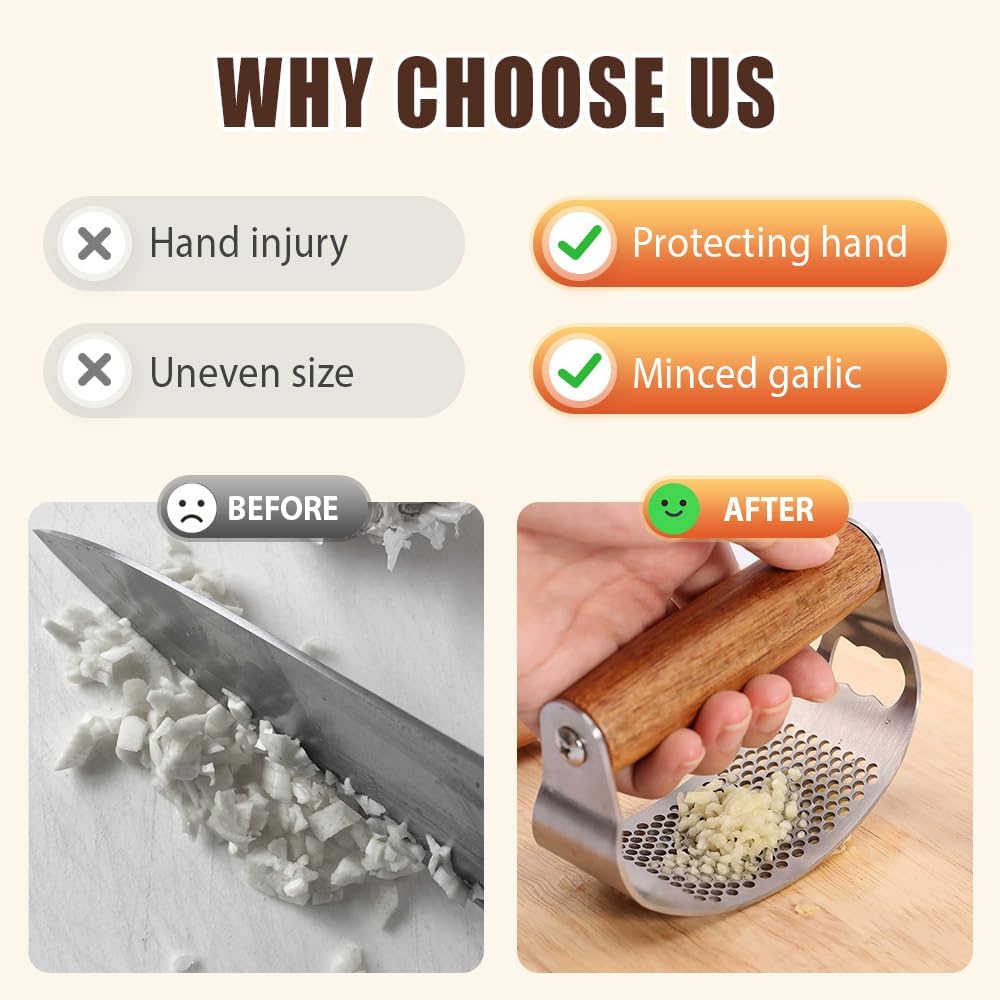• 【Effortless Garlic Crushing】Experience simple garlic preparation with this ergonomic garlic chopper tool. The kitchen garlic tool is designed for easy use, providing efficient results for those with weaker grip or smaller hands, making home cooking more enjoyable.