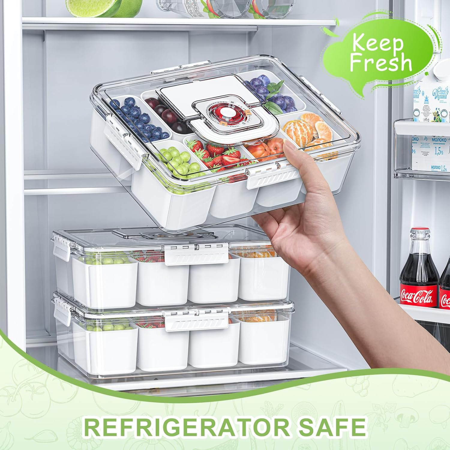 Snackle Box Container with Ice Pack, Bonus Insulated Bag Charcoolerie Chilled Portable Serving Tray with Lid and Handle,8 Compartment Snack Container for Charcuterie Snack Road Trip Picnic