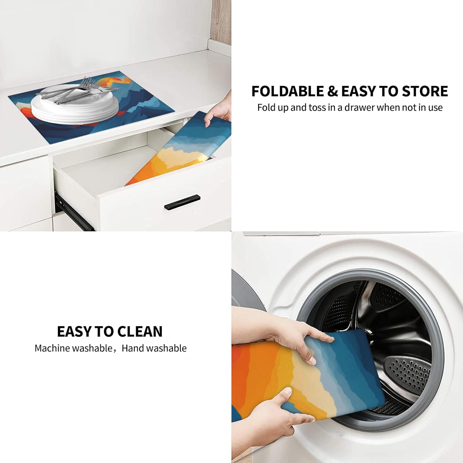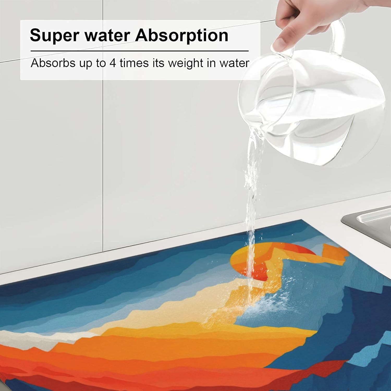 Colorful Mountains Sunset Dish Drying Mat for Kitchen Counter, 16"x18" Microfiber Absorbent Fast Dry Mat, 2Pcs Dish Mat Faucet Mats Sets, Large Drying Kitchen Mat Kitchen Drying Pad Coffee Bar Decor