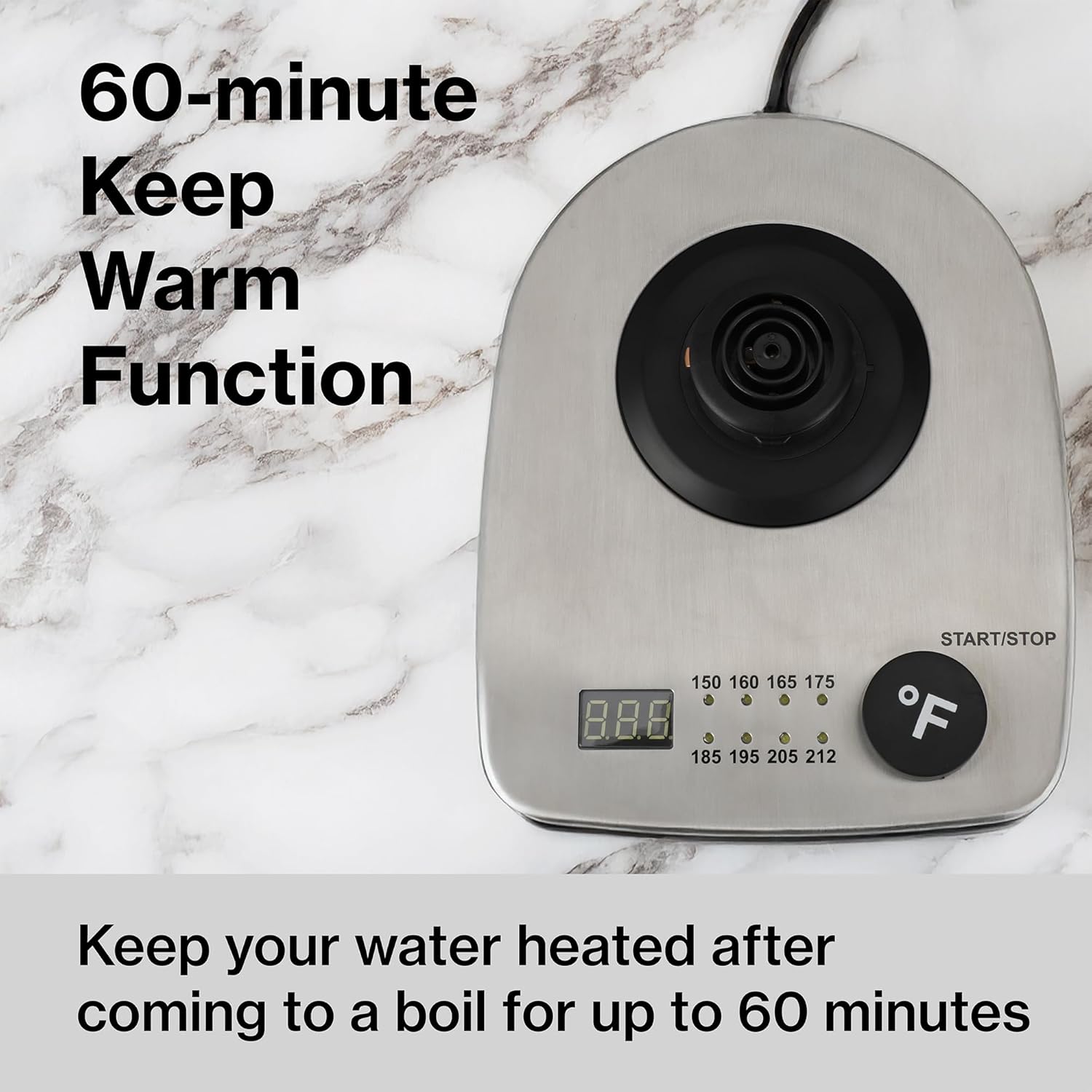 • ADJUSTABLE TEMPERATURE CONTROL – 8 Boiling Presets with LED display ensure precise heating for perfect brewing of tea, coffee, and more.