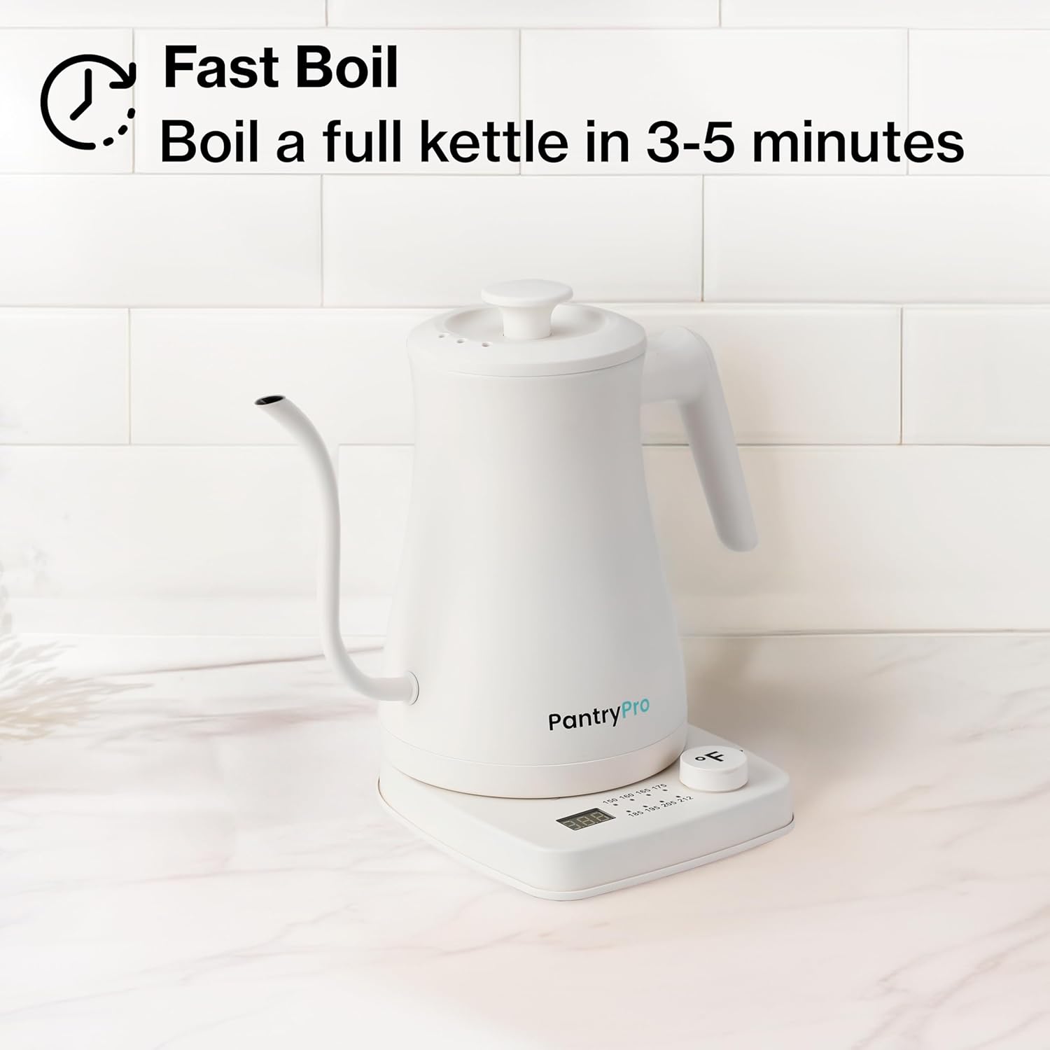 1.0L 1500W Gooseneck Electric Kettle - Stainless Steel Interior - Rapid-Boil - Auto Shut-Off, Boil-Dry Protection, Temperature Control, LED Indicator - White by The Display Guys