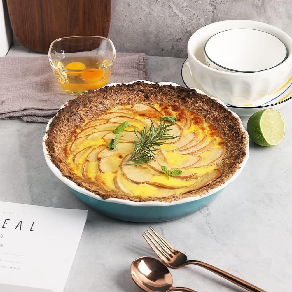 • Sweejar Ceramic Pie Pan - 10 Inch Round Baking Dish for Dinner, Non-Stick with Soft Wave Edge for Apple, Pumpkin and Pot Pies