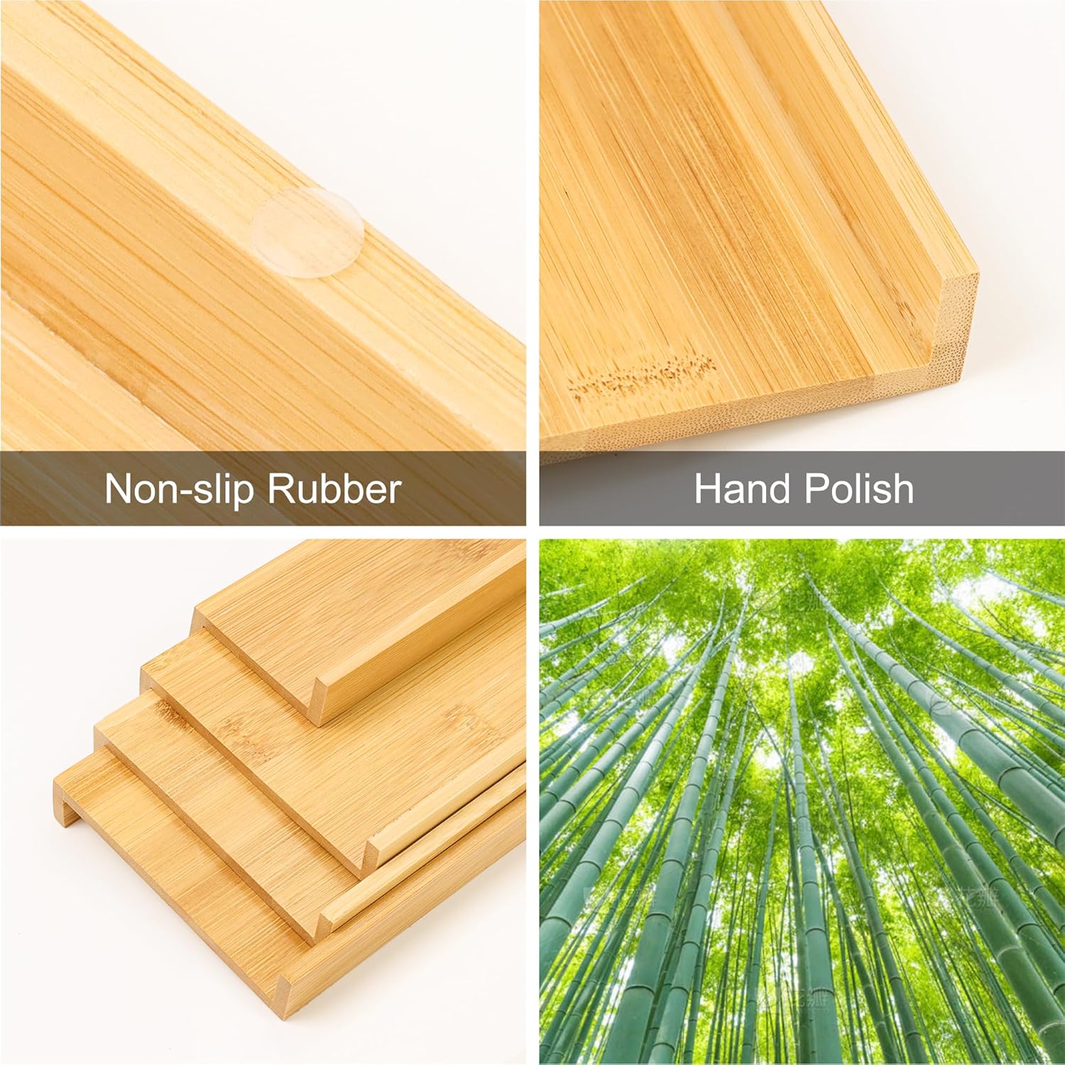 • Large-Capacity 4 Tire Spice Rack: Measures 16.14"×15.77"×2.75"(with jars), KitHero spice drawer organizer is applicable to most drawers, and the inclined board design makes it quick and easy to read the labels and grab jars.The hand-polished high quality construction 5 mm trays are sturdy and smooth, easy wipe to clean.Note:please measure your drawer!