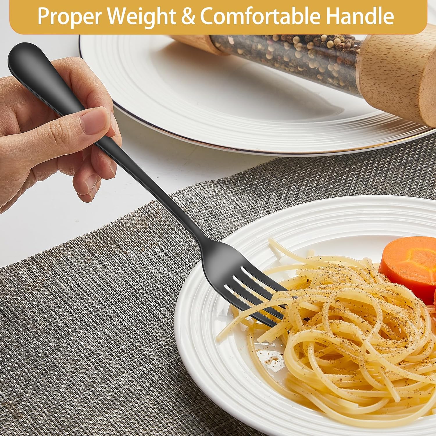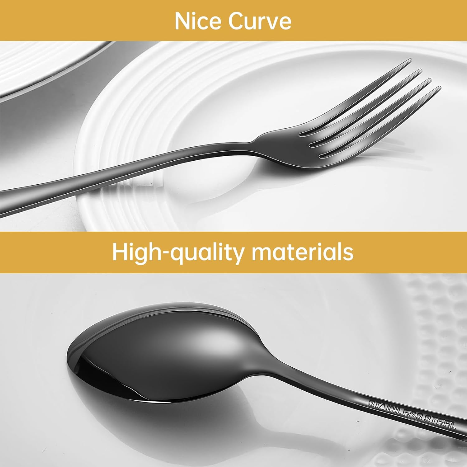 • 【Excellent Value】 Our black flatware set offers great quality at an affordable price,contains 12 dinner forks and 12 dinner spoons. It's perfect not only for replacing lost pieces but also as a complete set for daily use. It is an ideal choice for upcoming Christmas festivities, holiday parties, gatherings, weddings, camping, buffets, and banquets. It also makes a wonderful and practical gift.