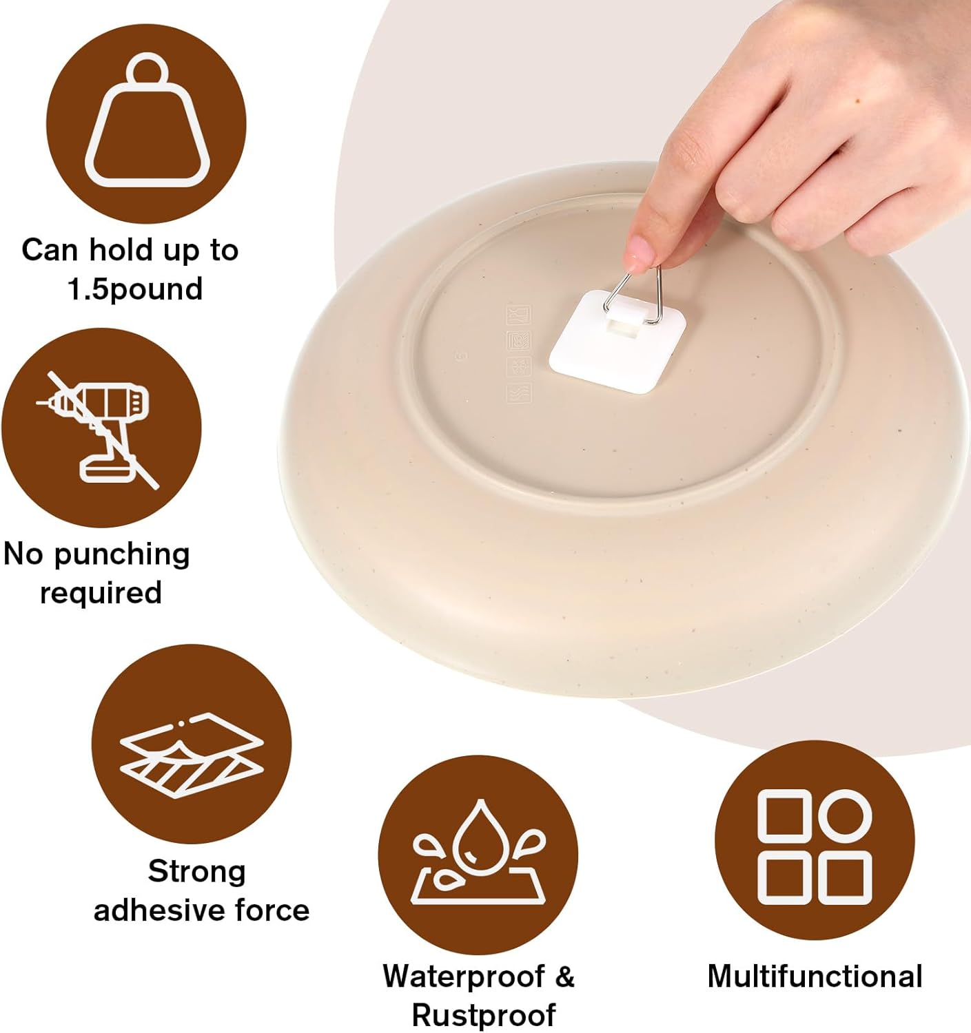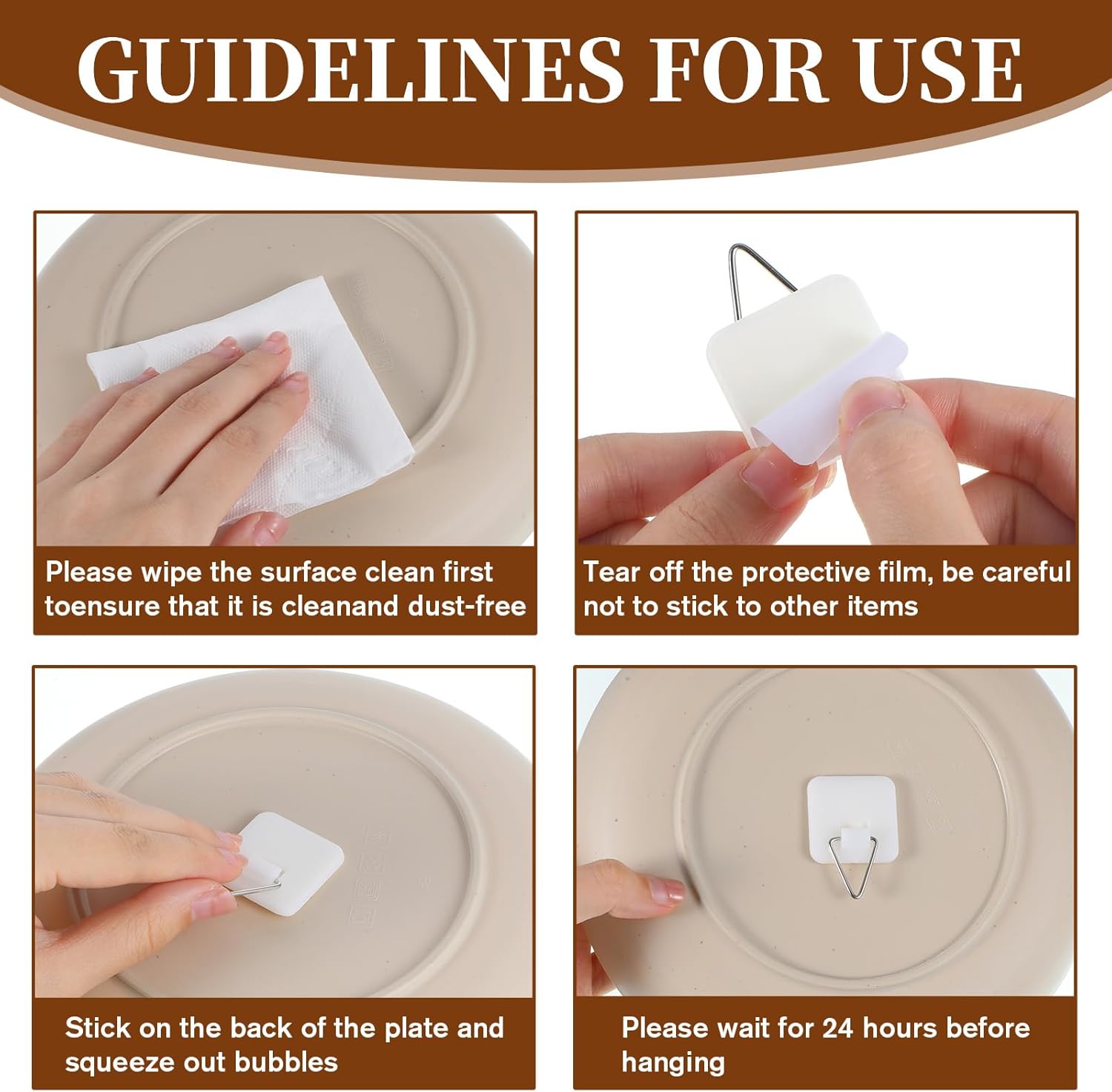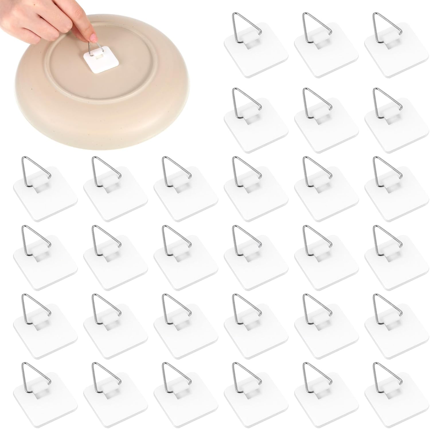 • 【Sufficient Quantity】You will receive 30 invisible adhesive plate hangers, measuring a large square 3cm/1.18in. You can use them according to your needs. Note: After attaching the wall hooks to the plates, let them sit for 12 minutes before hanging to prevent them from falling off.