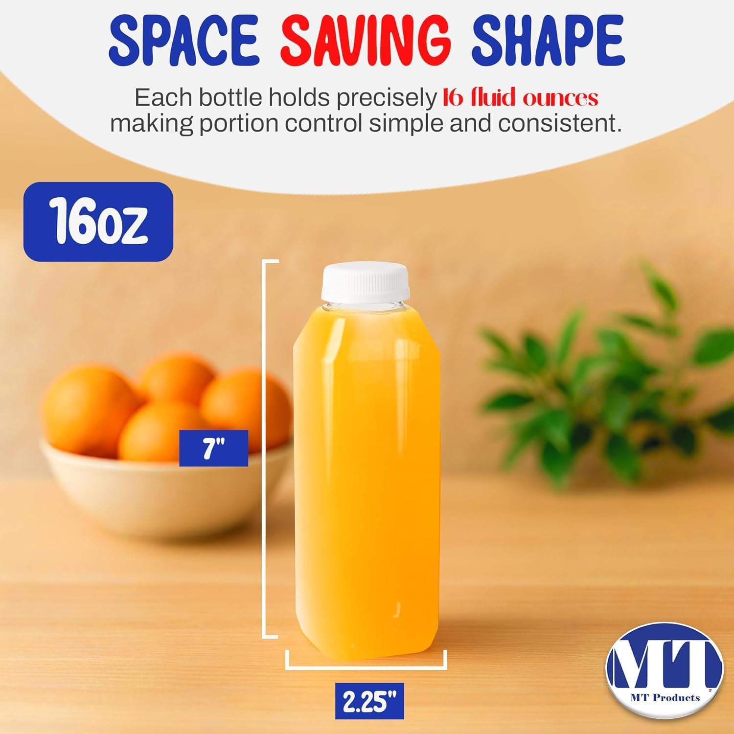 MT Products PET Plastic Juice Bottles 16 oz. - Clear Take-Out Containers (Pack of 160) - Made in USA