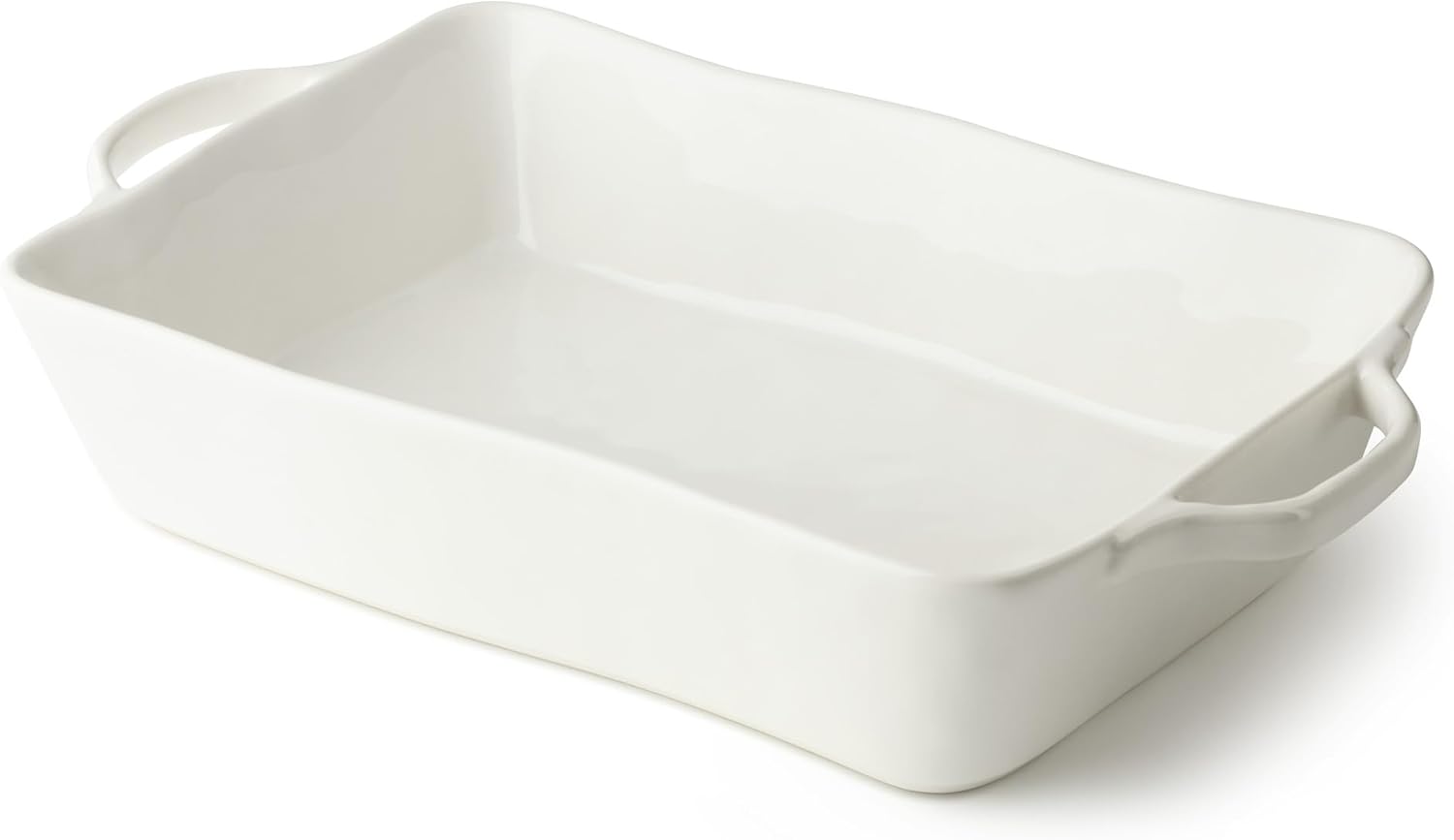 • The Linen Cream Medium Rectangular Baker brings warmth and style to your everyday meals, measuring 14 inches long by 8.75 inches wide with a 2.75-inch depth. Crafted from durable stoneware and finished in a creamy glaze, its clean lines and subtle curvature create a timeless silhouette perfect for roasted vegetables, casseroles, baked oatmeal, or family favorites.