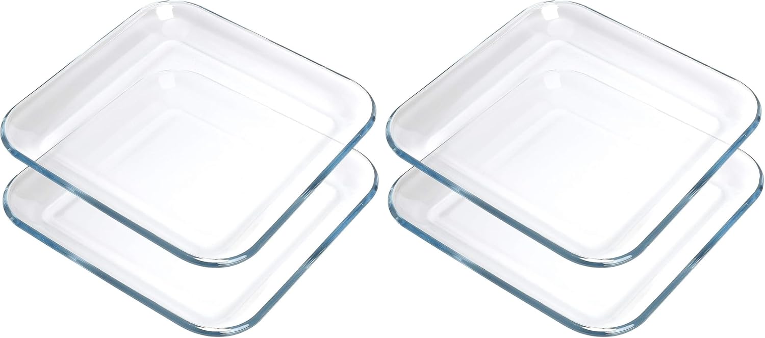 FOYO Oven Basics Glass Plate Set, Square Tempered Glass Serving Plates Pie Plate Salad Plates - 10" Diameter(Set of 2) (Pack of 2)