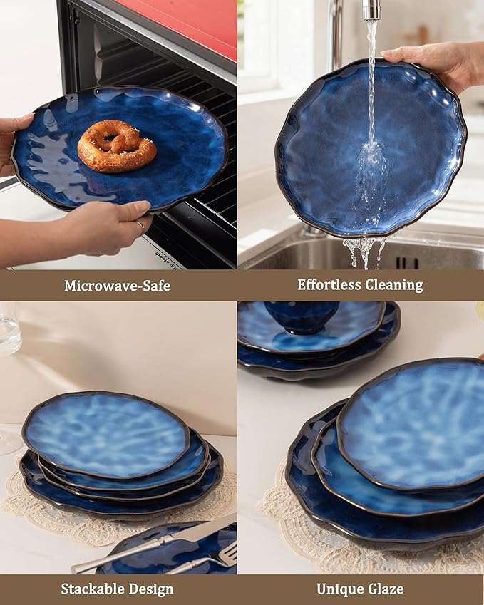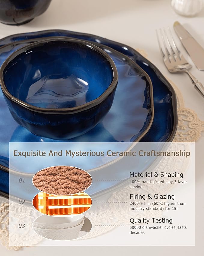 • [Everyday Dinnerware]: Our premium ceramic dinnerware, crafted from high-quality natural clay, is LEAD-FREE and CADMIUM-FREE. It guarantees safety for your entire family and is eco-friendly. Whether you're enjoying hearty steaks, fresh salads, or sweet desserts, you can do so with total peace of mind.