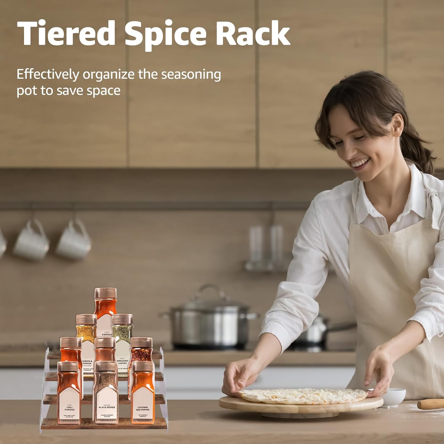 • What You Get: A simple-to-install tiered spice rack. Keep your spices visible and your cooking organized.