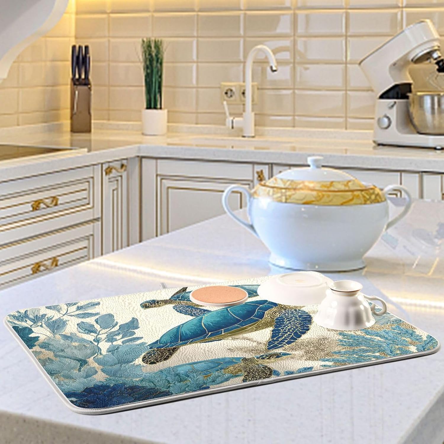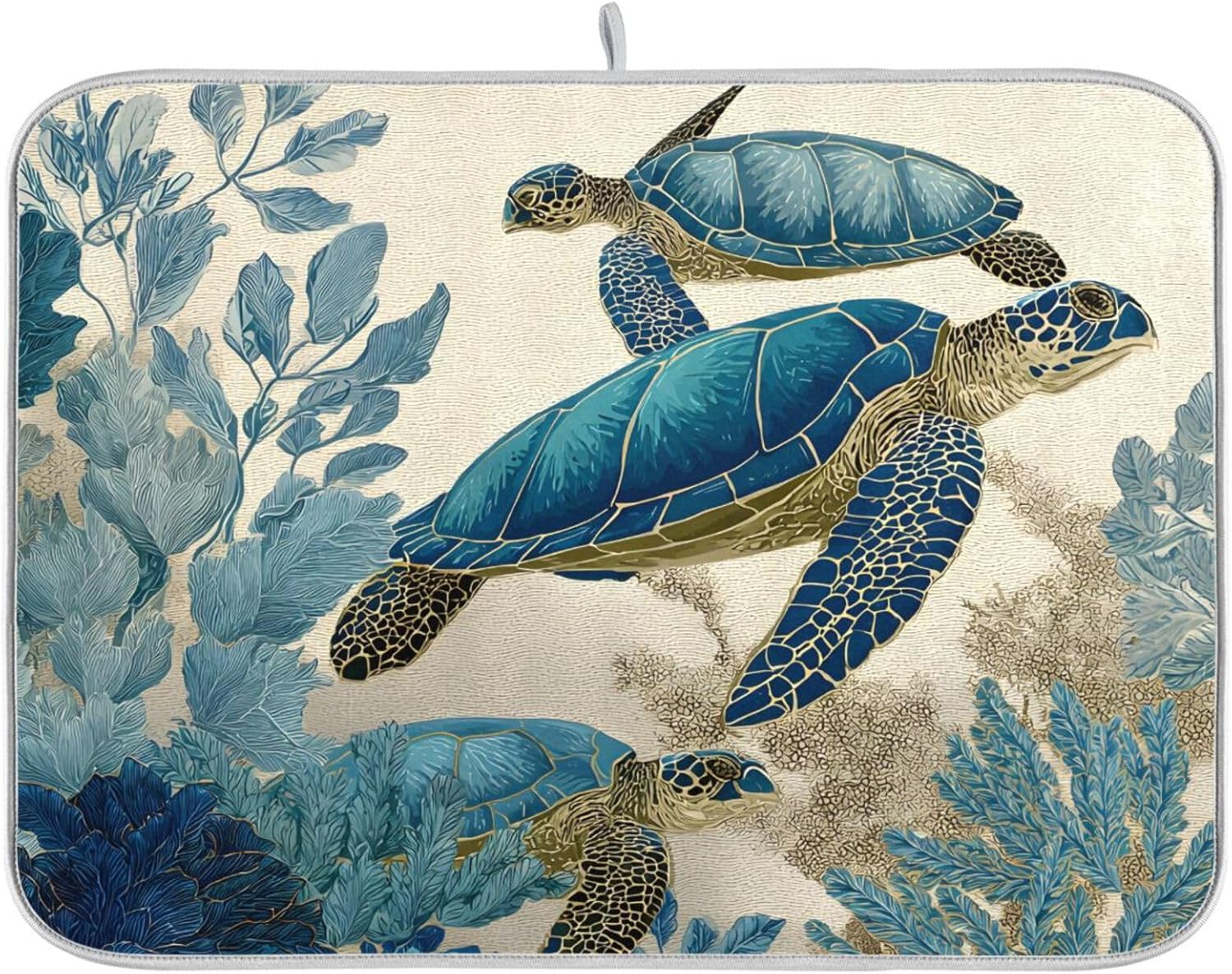Watercolor Sea Turtle Dish Drying Mat Super Absorbent Drying Mat 18x24 inch Large Dish Drying Mats for Kitchen Counter Dish Drying Pads Kitchen Drying Matt for Countertop
