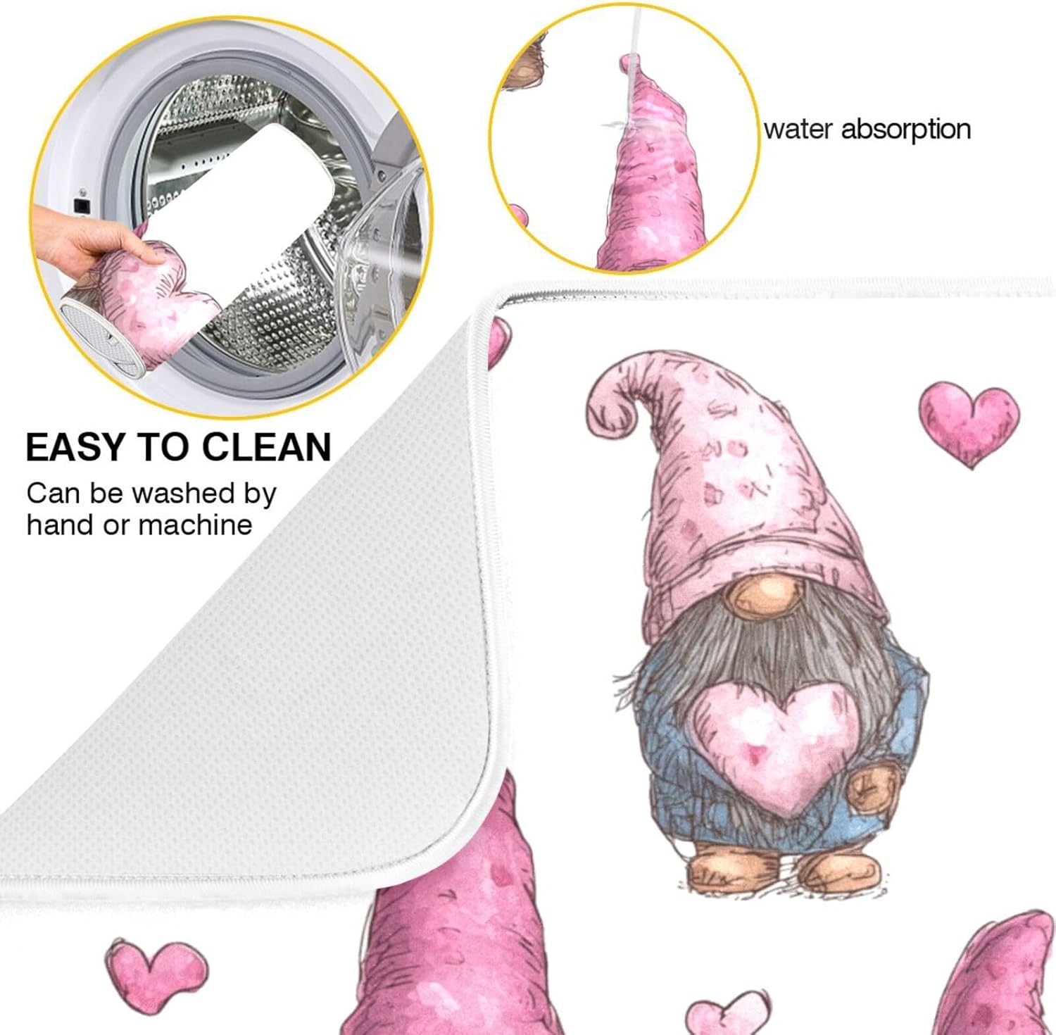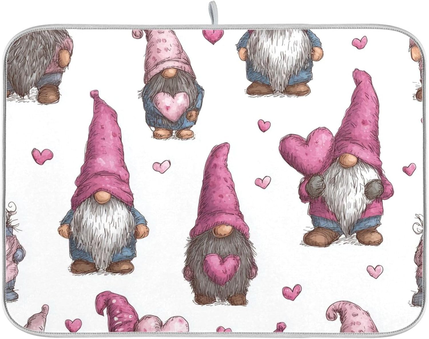 Cute Gnomes with Pink Hats Dish Drying Mat Super Absorbent Drying Mat 18x24 inch Large Dish Drying Mats for Kitchen Counter Dish Drying Pads Kitchen Drying Matt for Countertop