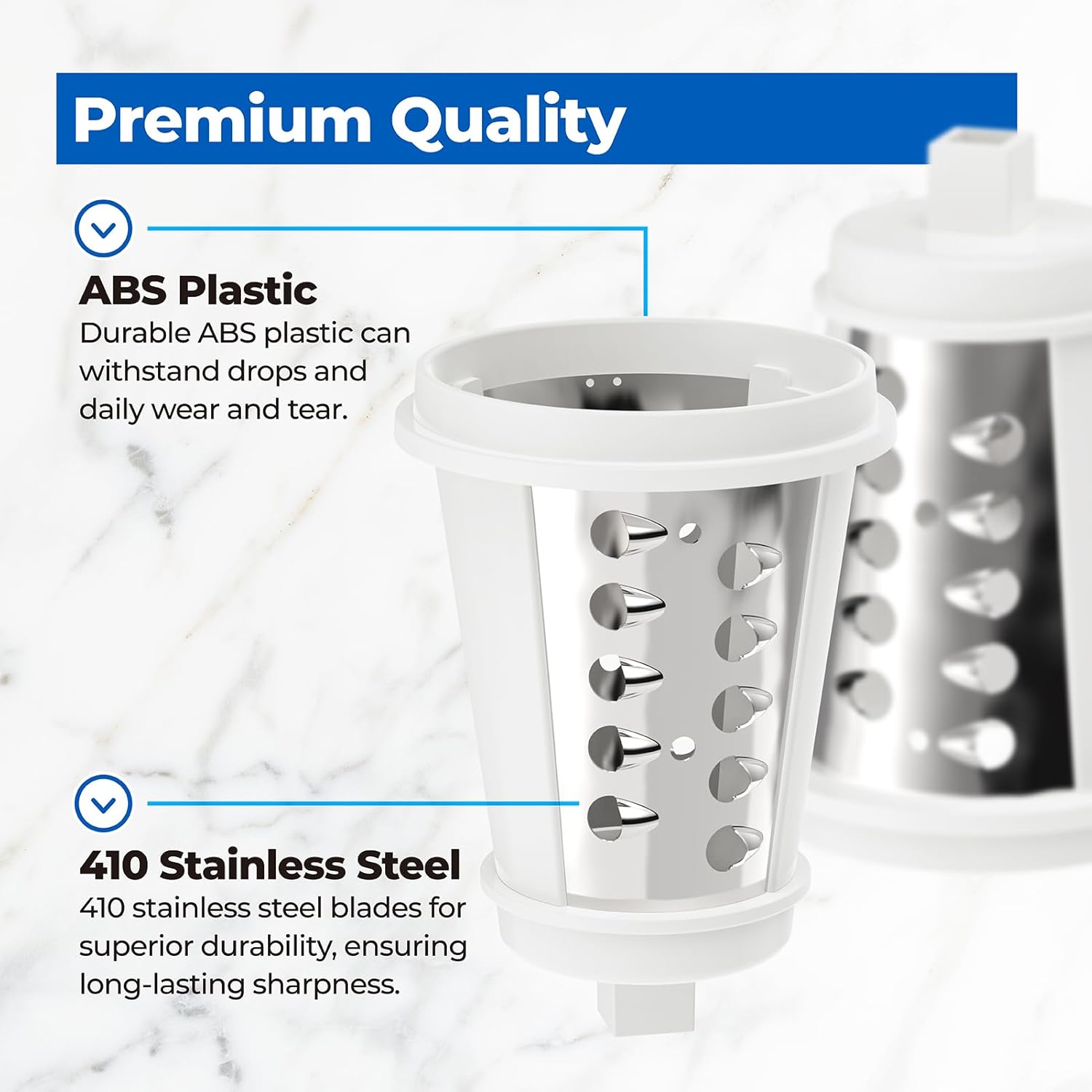 • 【PREMIUM MATERIAL】Made of ABS and 410 stainless steel materials, our grater blade meets food safety standards and has excellent strength, rust prevention and wear resistance.