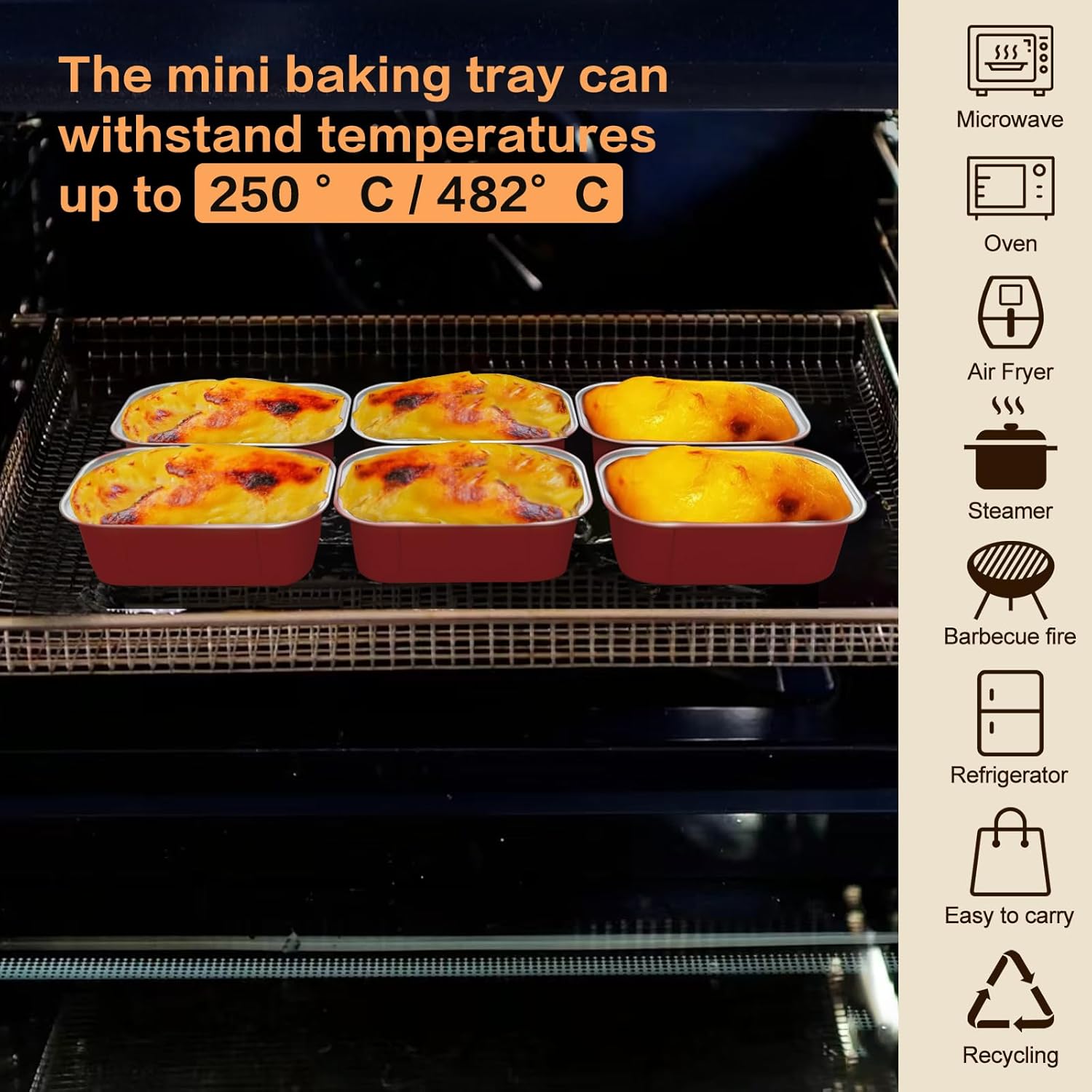 • Easy to use: No baking pan required, these mini bread pans are made of thick food-grade aluminum foil and will stand well in the oven. The rectangular baking pan is oven, microwave, and air fryer safe, even over a fire! These mini baking pans can withstand temperatures up to 250°C/482°F, please allow the cups to cool before closing the lid, note: the clear lid is not heat resistant