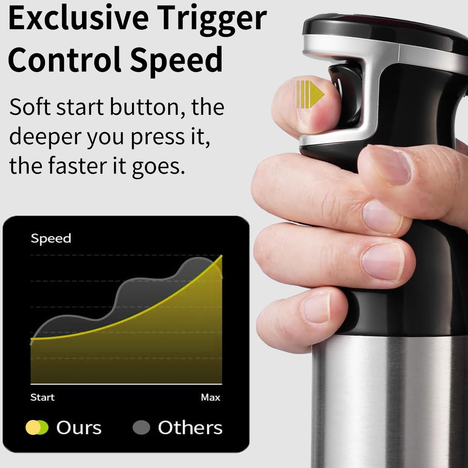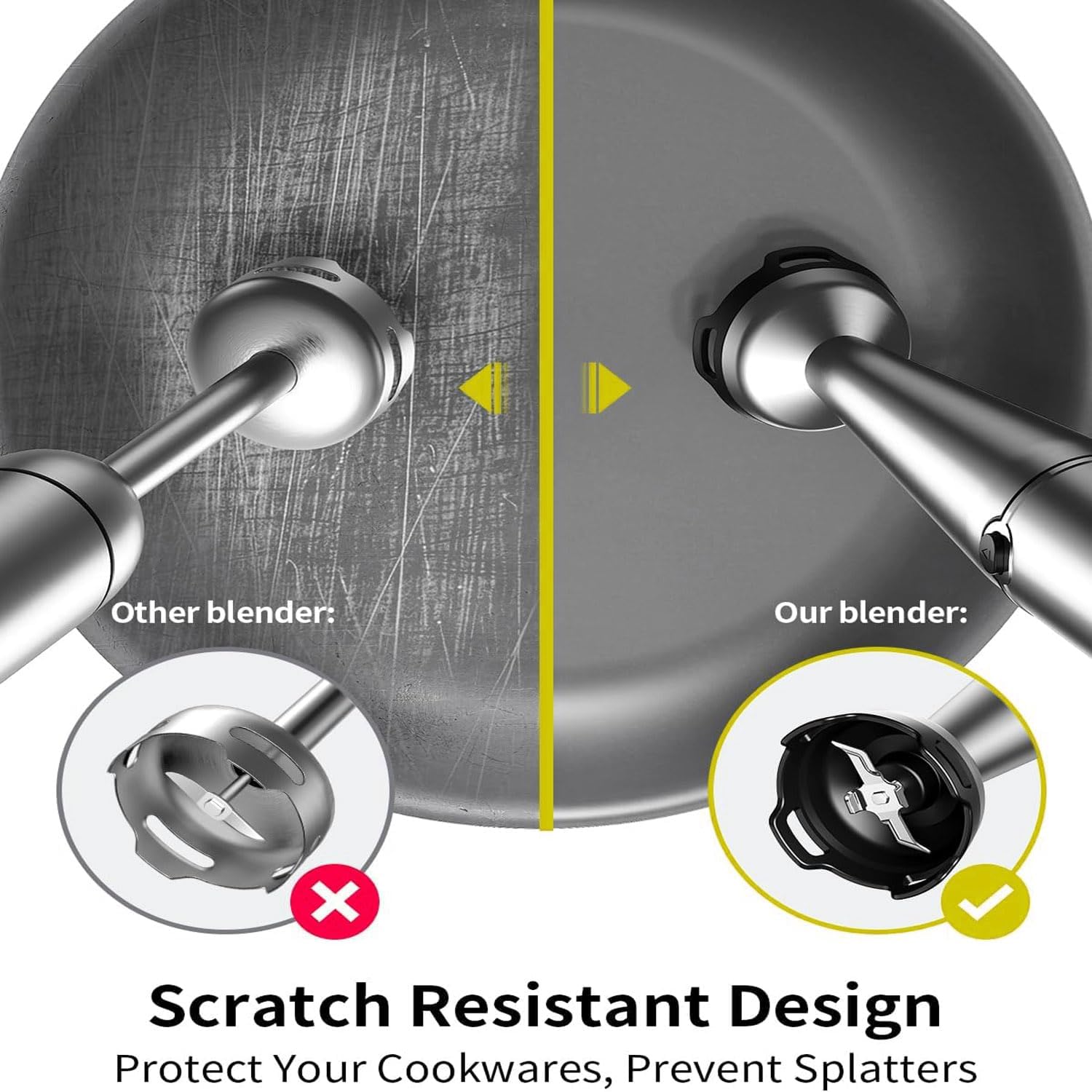 • Safe Operation on Your Pot and Pans: Equipped with a protective nylon blade cover to prevent scratches and ensure safe use, while keeping your cookware, kitchen and clothes clean. Ergonomic grip design with easy-to-use speed control for precise blending control,you can use it one-handed and mix while preparing a recipe