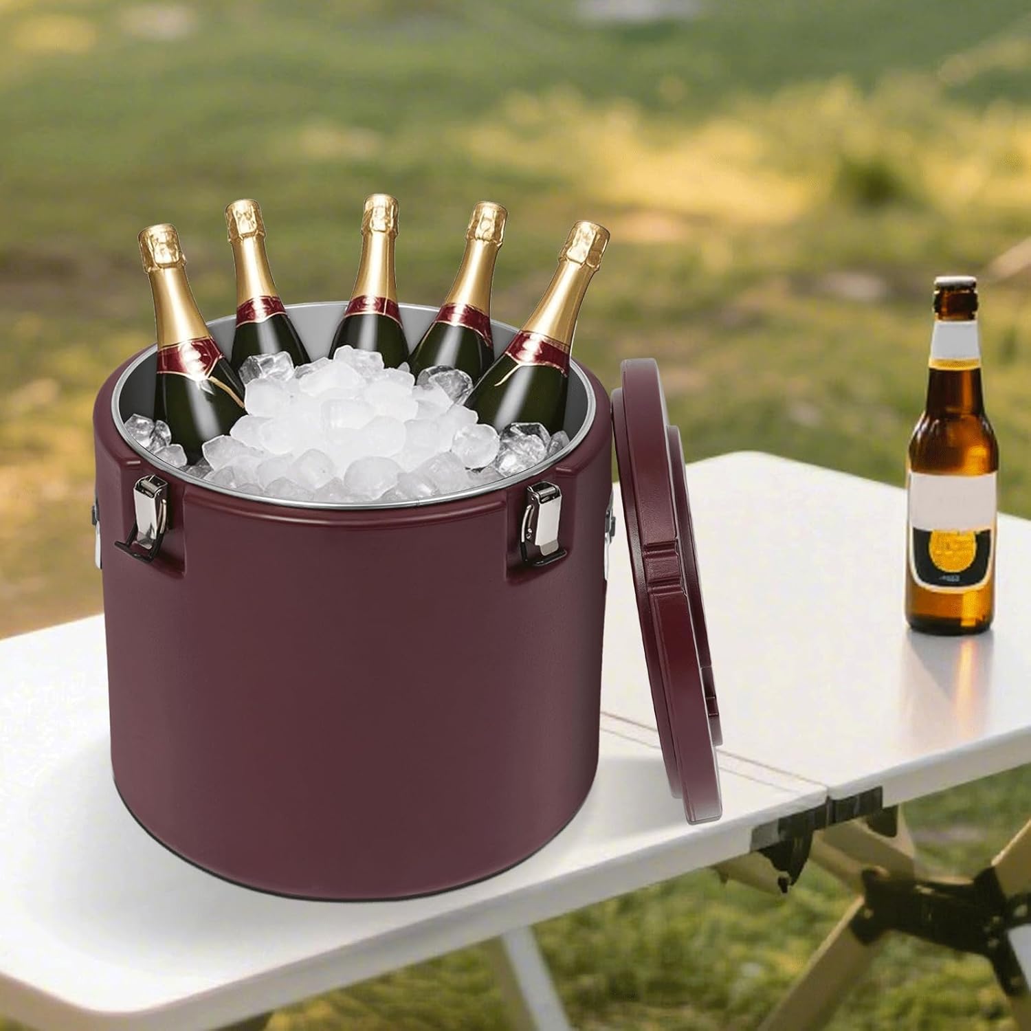 DYNAMI 13.2Gal Insulated Food Container with Handles&Buckles,304 Stainless Steel Portable Commercial Food Warmer Insulated Soup Container Cold Hot Box Insulated Food Carrier for Catering (Brown)