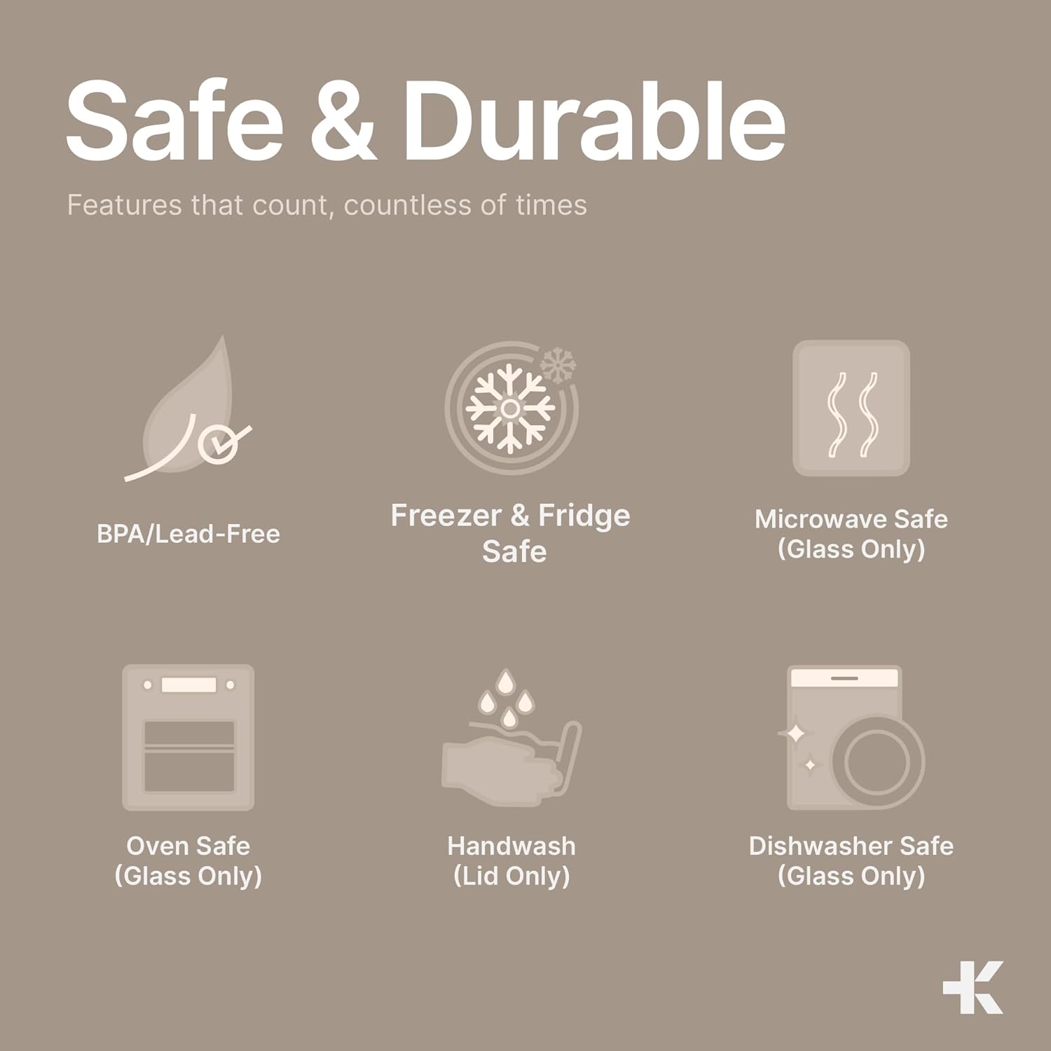 • DURABLE BOROSILICATE GLASS – Crafted from premium borosilicate glass, these glass food containers resist thermal shock, stains, and odors while delivering long-lasting clarity. Stronger than ordinary glass, they’re built to withstand daily use.