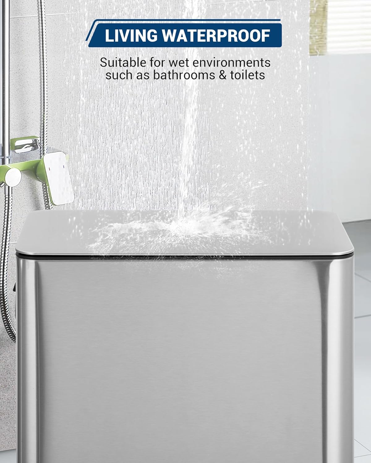 • Sleek Stainless Steel for Modern Decor Crafted from premium, rust-resistant stainless steel with a sleek finish, this wastebasket adds a touch of modern elegance to your bathroom, kitchen, or office. It's built to resist fingerprints and blend seamlessly with your home decor.