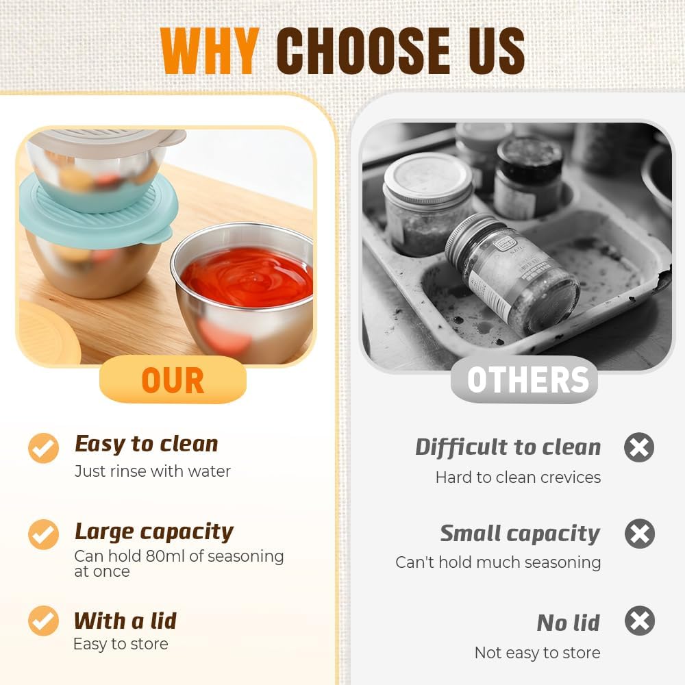 • 【Leak-Proof Screw Lids】:Twist-on lids seal tightly to keep sauces, dips, or dressings fresh. Silicone lids feature precision-engineered grooves that lock tightly around the rim, creating an airtight seal that keeping sauces fresh and preventing leaks. Ideal for work, school, travel, and on-the-go meals.