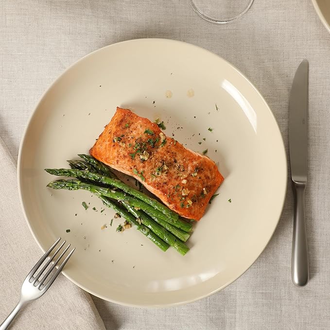 • QUIET SOPHISTICATION: Soft, matte glaze provides a dreamy texture as a smooth backdrop for various plating styles. Off-white rims give off a quiet sophistication for a simply modern look.
